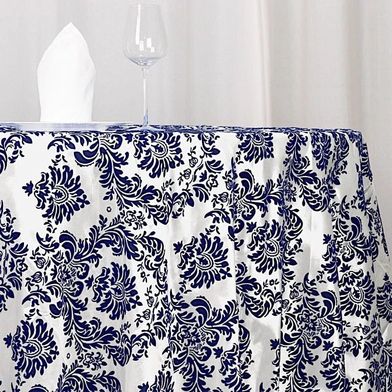 Elevate the look of your reception tables with classic round tablecloths from Leilani Wholesale! Crafted from high quality taffeta fabric with velvet damask flocking design, this 120″ round tablecloth will create a stylish table decoration. Pair these linens with matching napkins and dinnerware to add an extra decorative touch to your party table setting. Perfect for weddings, parties, events or any special occasions.