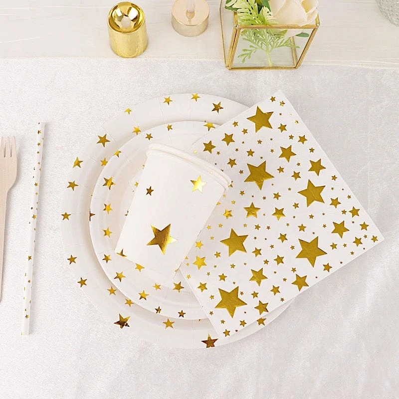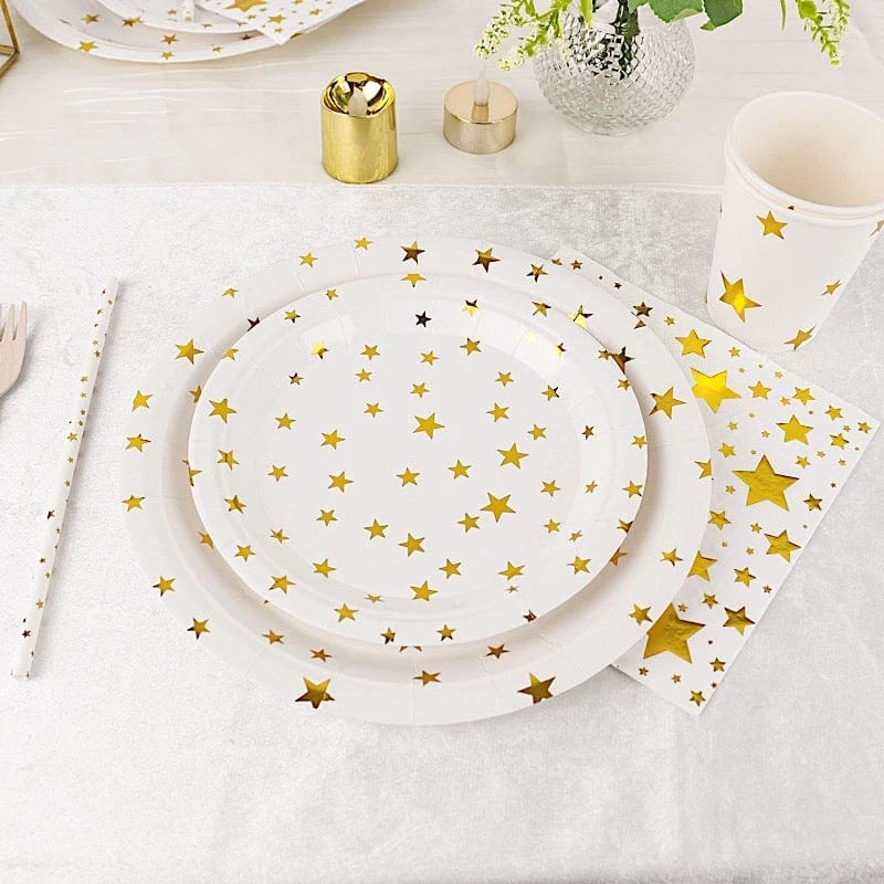 Serve your great food and drinks in style with paper tableware set from Leilani Wholesale! The trendy look of these paper plates, cups, napkins and straws will provide eye-catching elegance at your next gathering. Perfect for serving meals and beverages and a great way to add a festive touch to your party tables. Our disposable tableware set is the practical yet stylish dinnerware solution for catering, parties, events, wedding receptions, graduations, birthday parties, anniversaries, BBQs, all holidays and more!