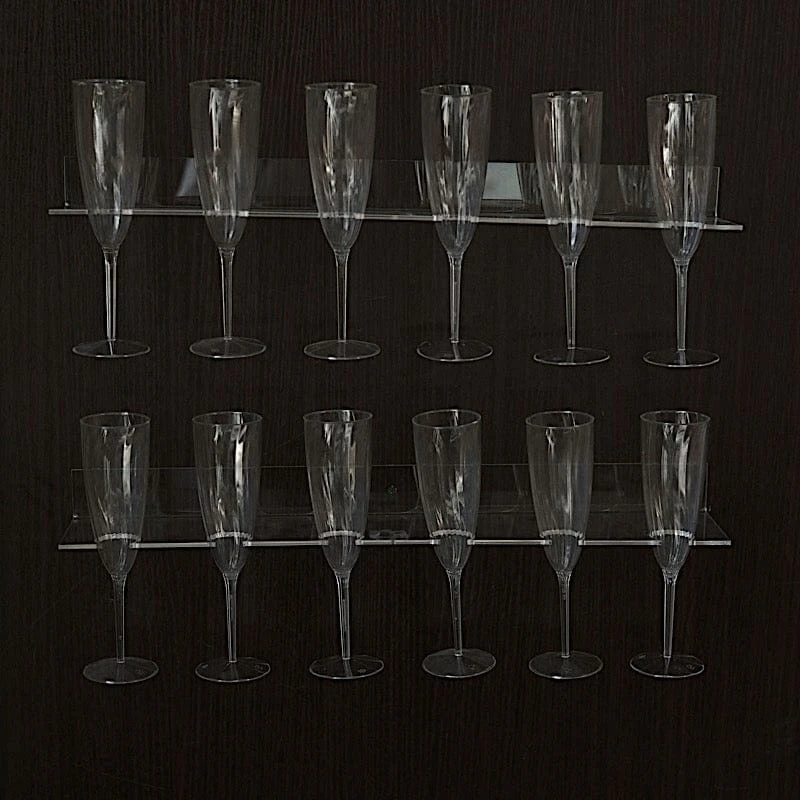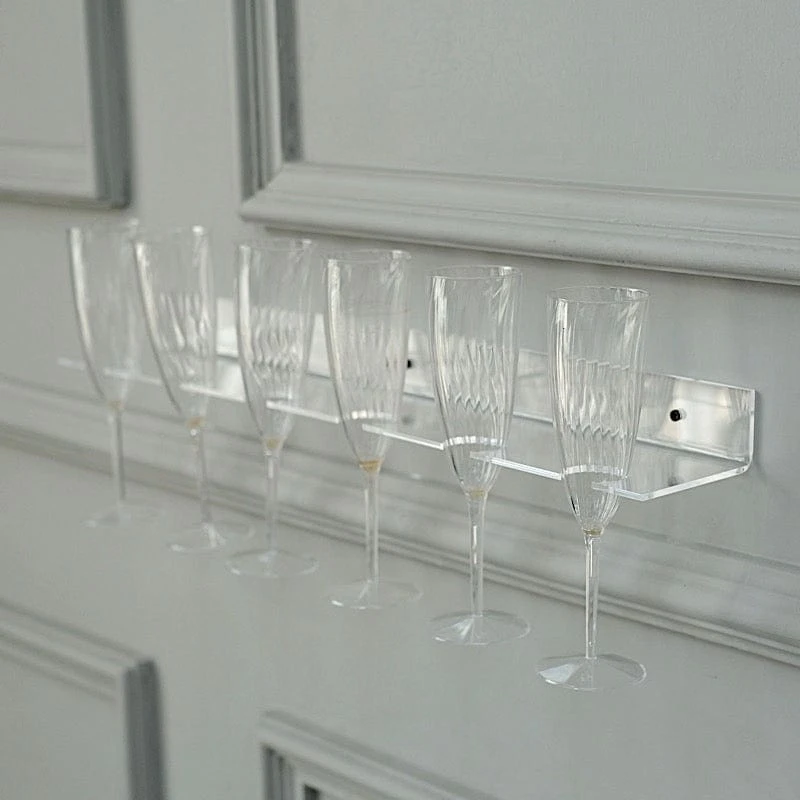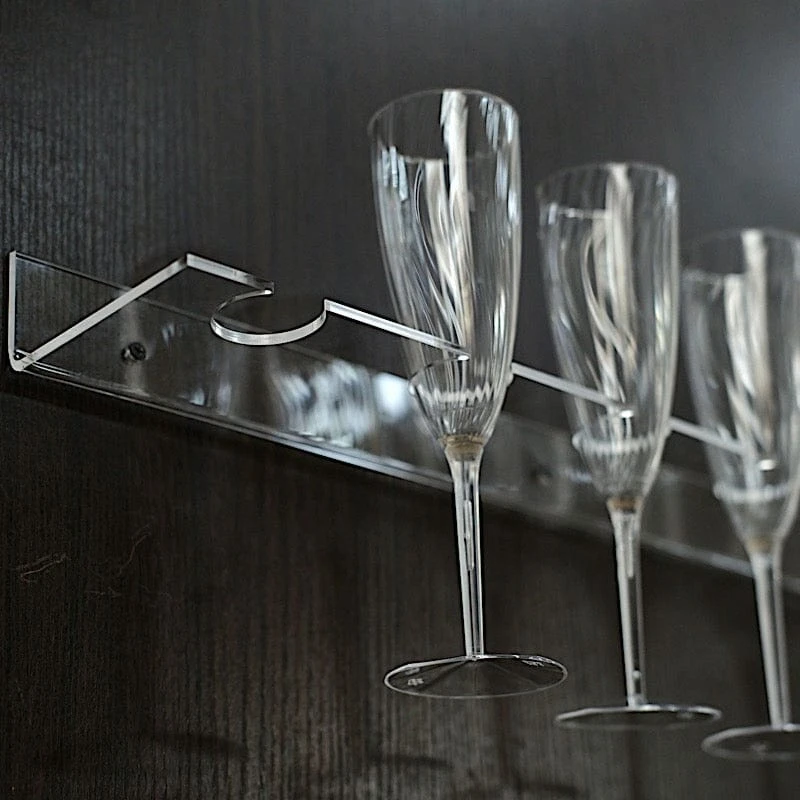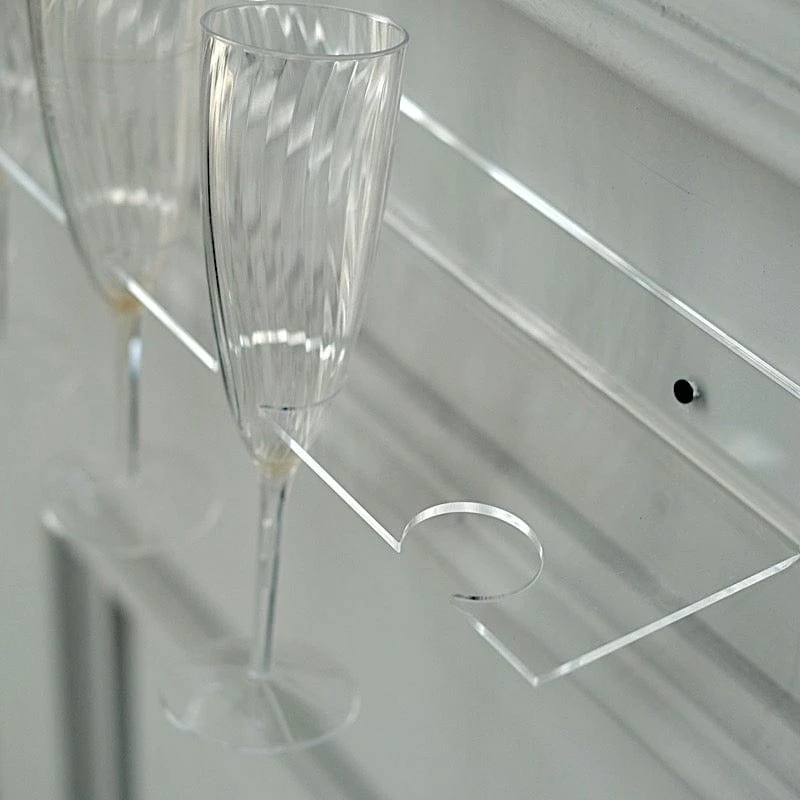 Have a convenient and elegant way to serve your drinks with champagne glass holders from Leilani Wholesale! Crafted from high quality acrylic with slots to hold 6 champagne glasses. These easy-to-mount hanging champagne flute holders are a perfect way to display beverages for your special occasions. These wine glass racks will also save space and create an organized look for your home living room or kitchen. Great decorative server for your wedding, parties and events.