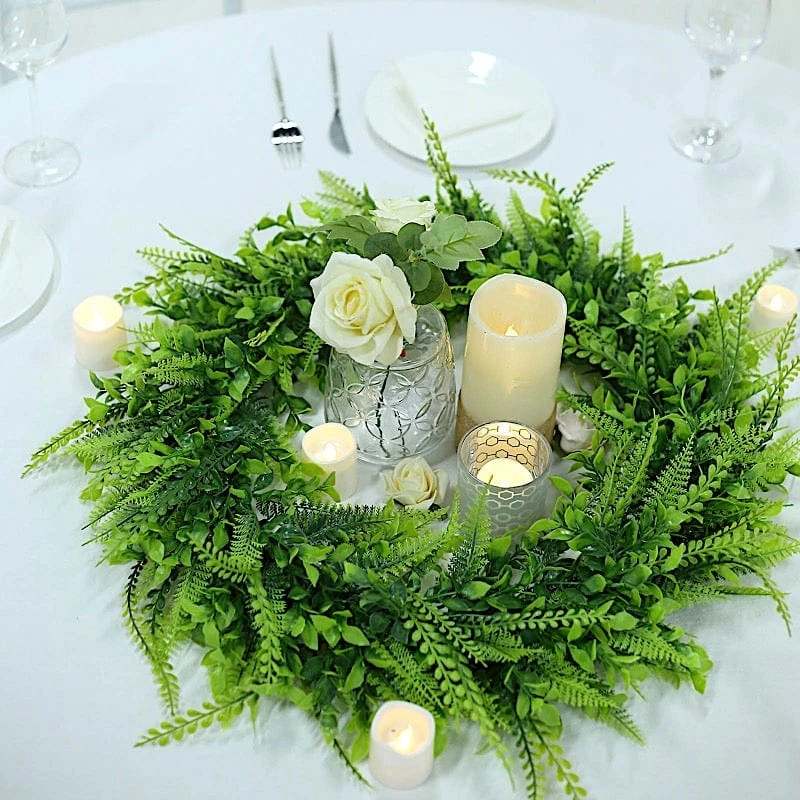 Create a refreshing atmosphere for your special occasions with artificial boxwood and fern leaves wreaths from Leilani Wholesale! Crafted from high quality plastic, these decorative wreath rings will create a charming welcome for your guests. Display them on doors, windows and walls as hanging decorations. Incorporate them with your existing centerpieces or simply use them as candle rings for weddings, themed parties, events or in your home decor. Have fun with them and see where your imagination takes you.