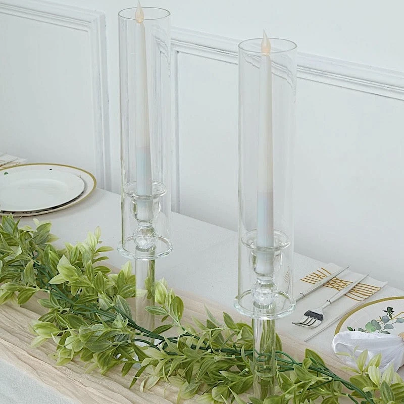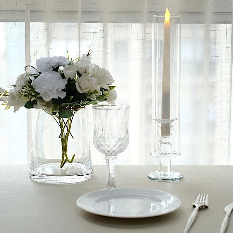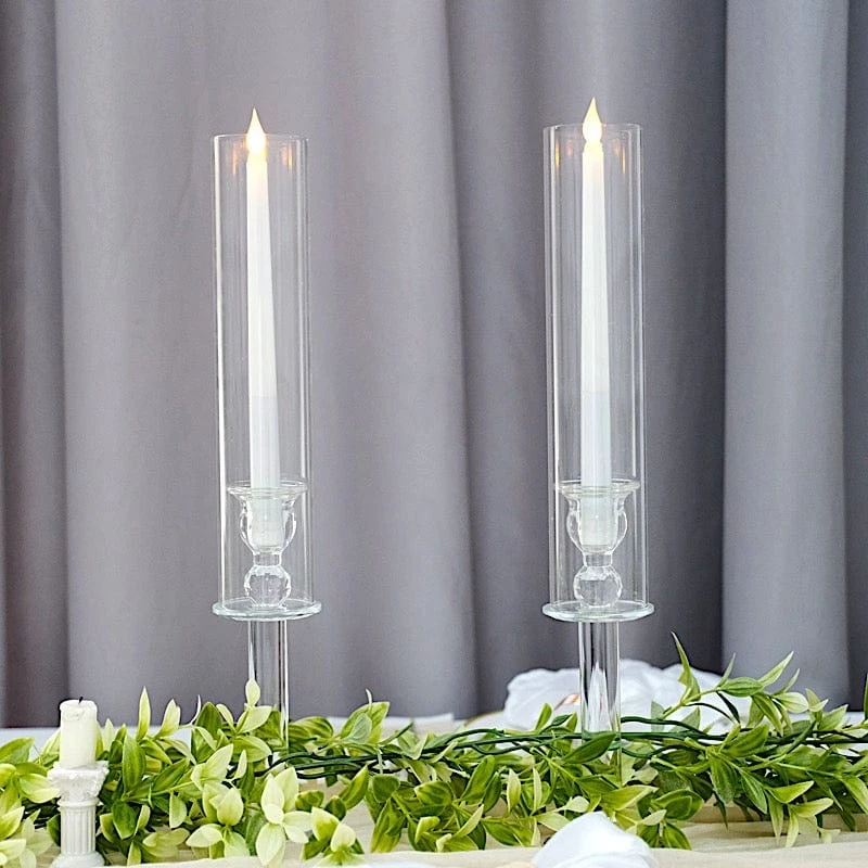 Add a touch of timeless elegance to your tabletop with glass candle holders from Leilani Wholesale. These crystal-like glass candle holders have a stylish round base and cylinder glass shades to protect and secure your taper candles. Use them as centerpieces to grace your reception tables for weddings, parties, events or any special occasions. These taper candle holders are also perfect decorative pieces for your home. Get your dream decorations and see where your imagination takes you!