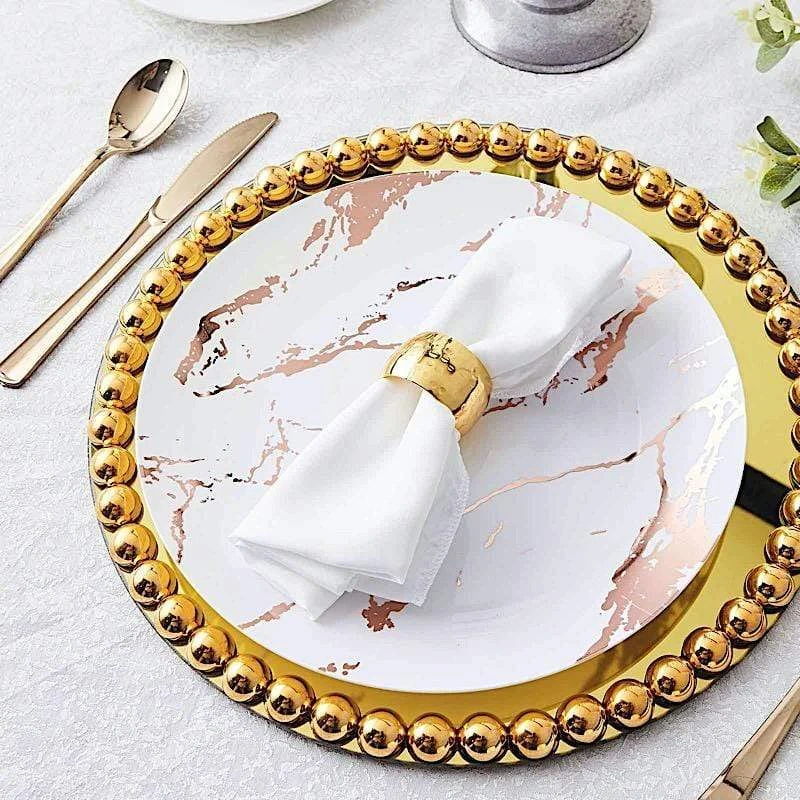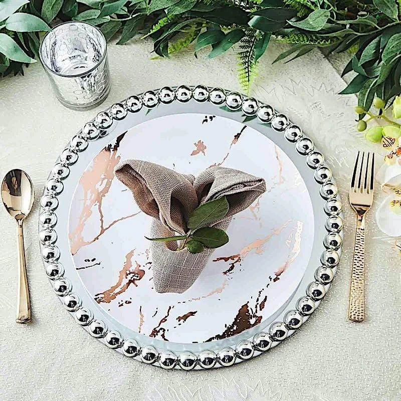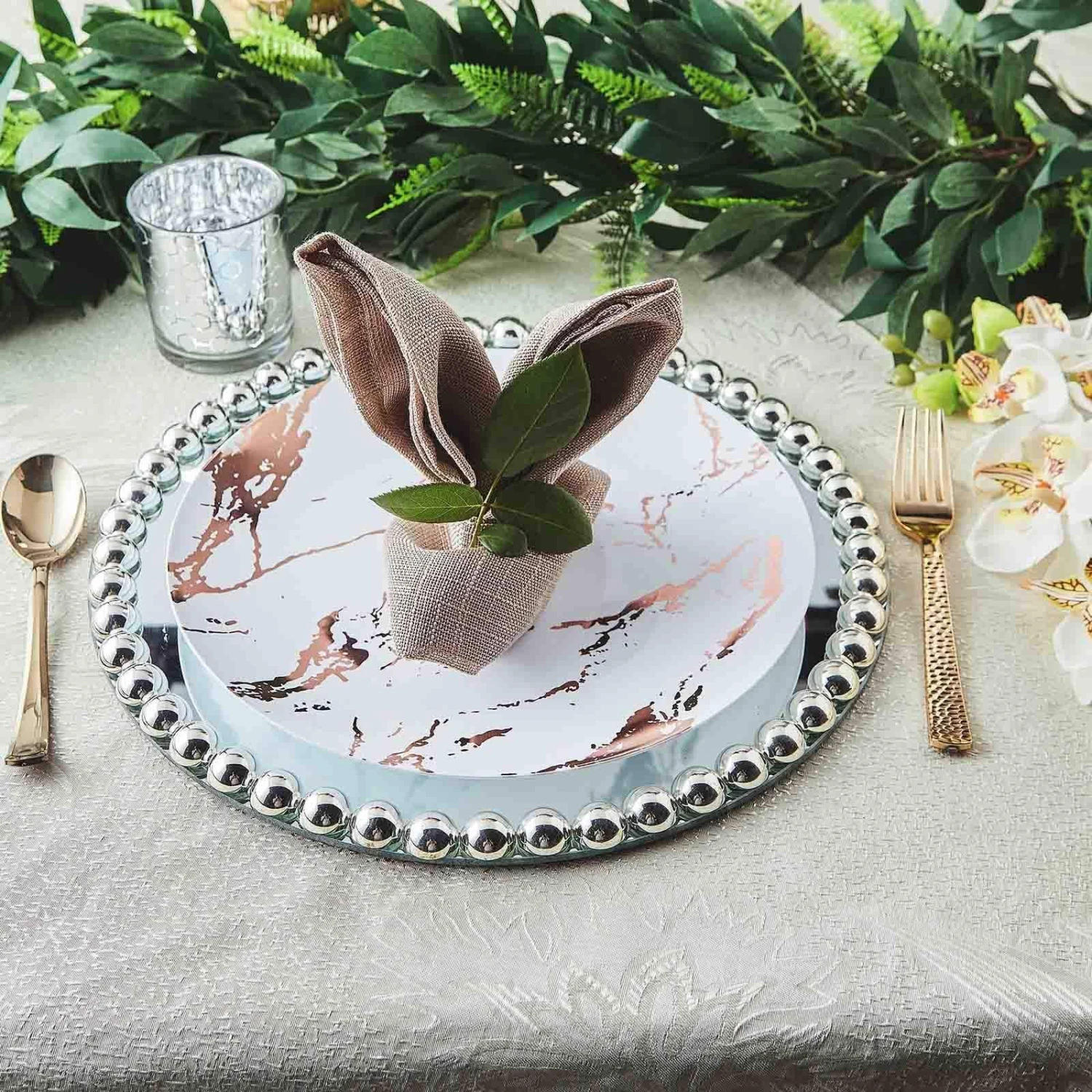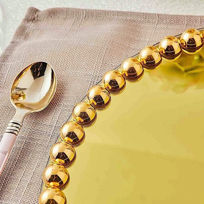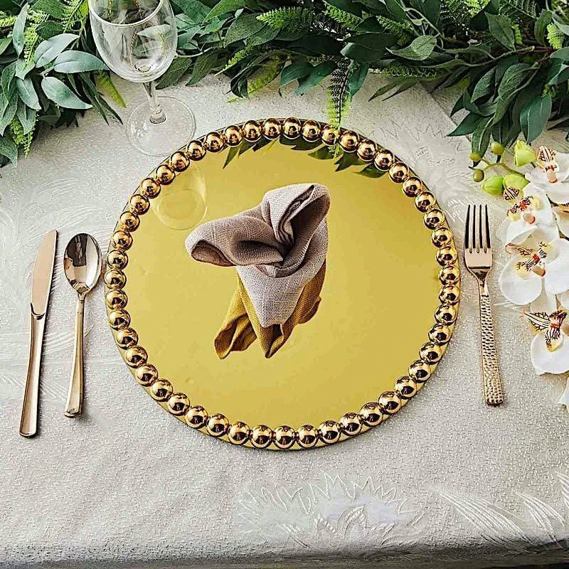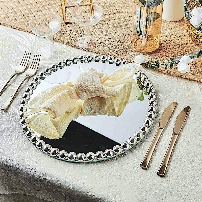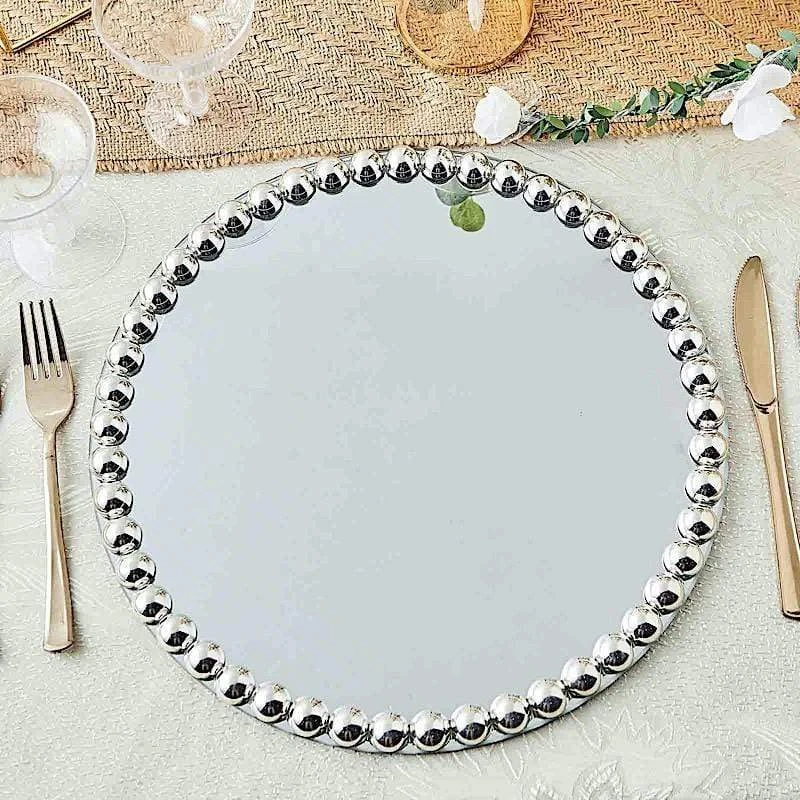 Accent your tables with stylish charger plates for weddings, parties, and special events. Premium glass charger plates with a pearl beaded trim will enhance the appearance of your reception tables. They are easy to clean, just wipe with damp cloth or sponge. Great to use with fine china and to protect the linens from the plates and bowls.