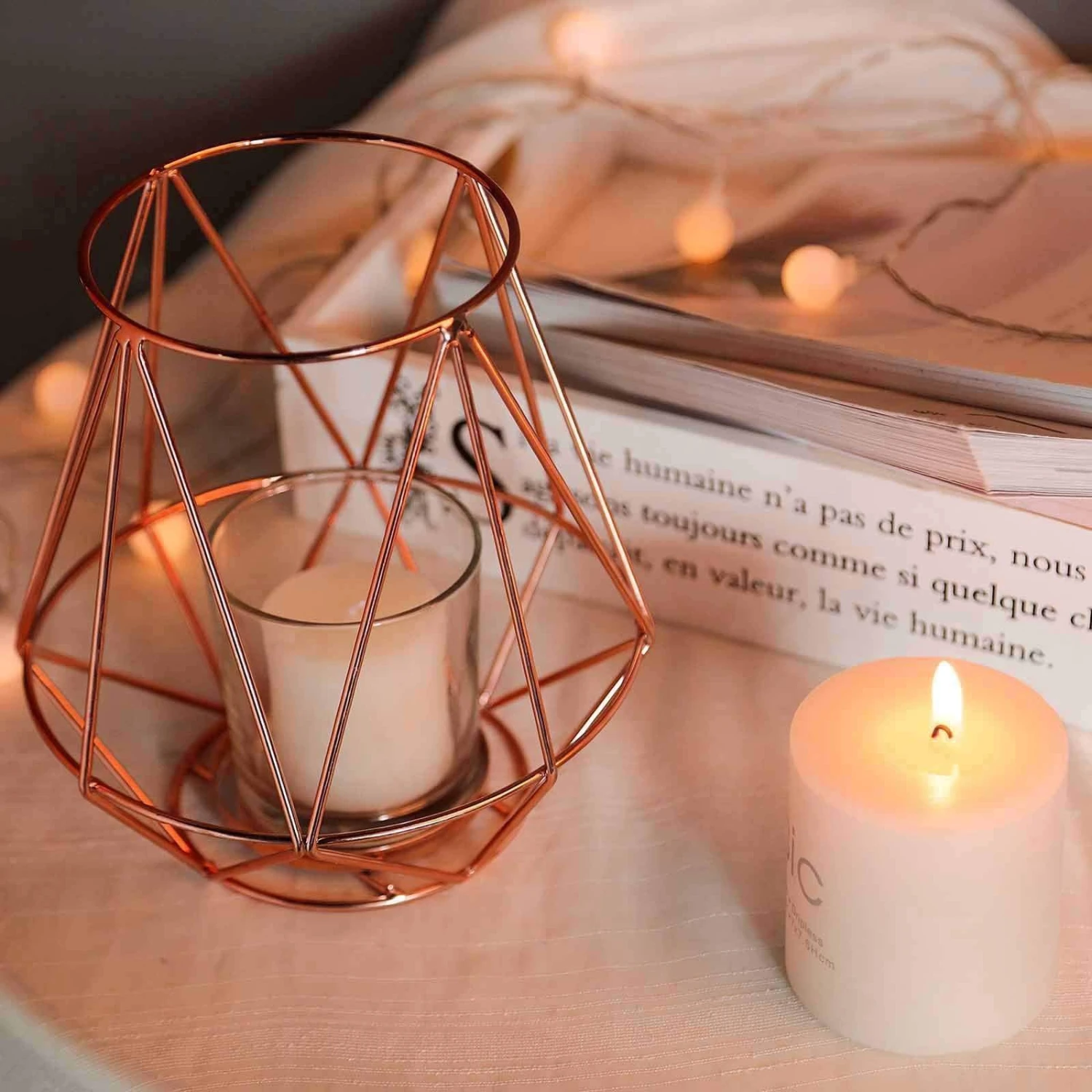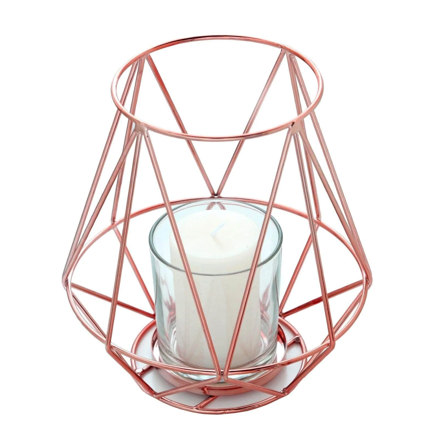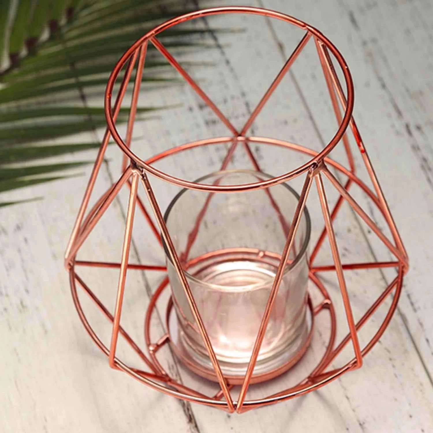 These Rose Gold Geometric Design Metal Tealight Holders makes a stunning centerpiece. The base has a solid metal bottom cup for the placement of a tealight, a votive candle, succulents, flowers and lush greenery. Our candle holders are great for weddings, parties, events or simply using it in your own home.