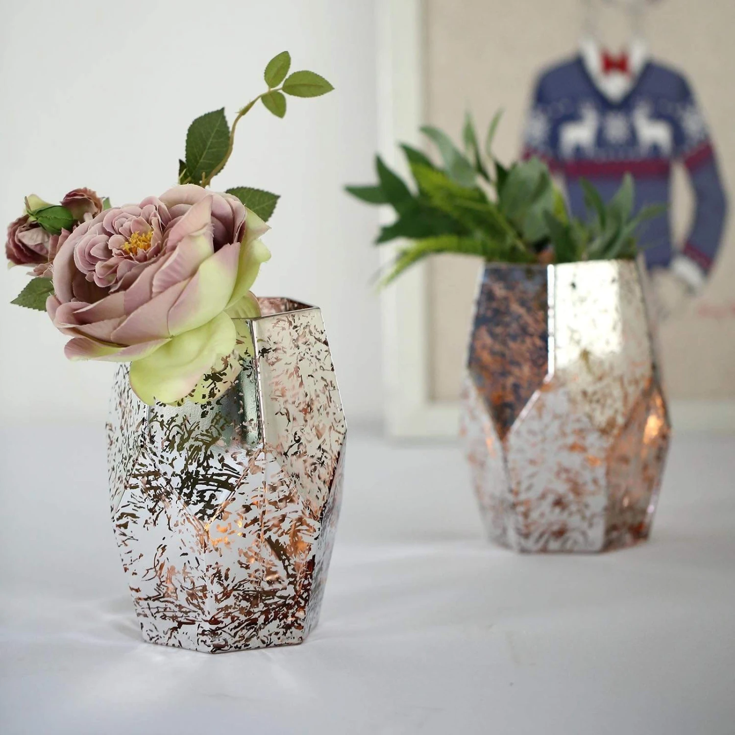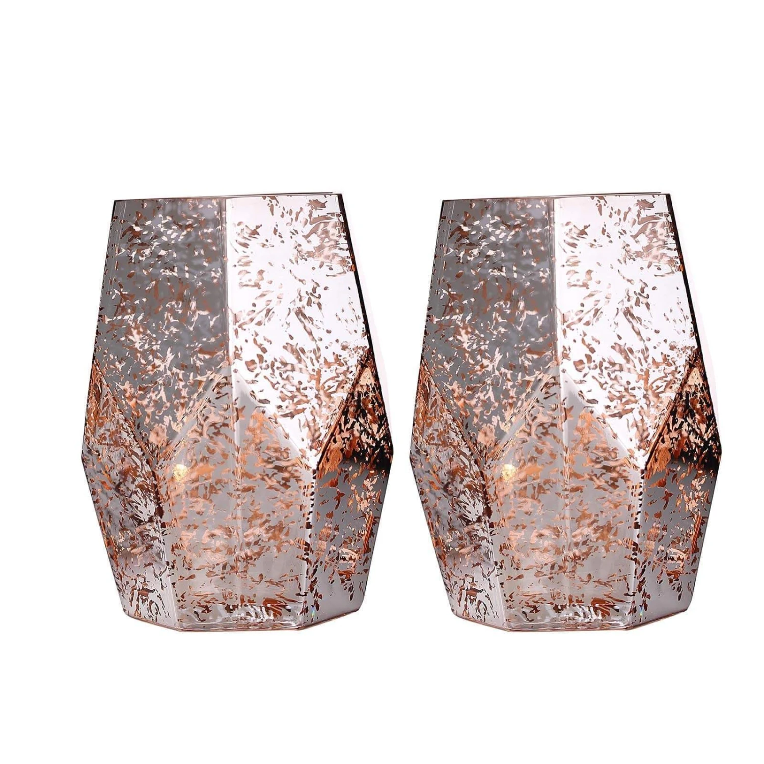Decorate your special day with mercury glass geometric vases from Leilani Wholesale! Our centerpieces are great for weddings, parties, events or simply using it in your own home. This decorative set of vases can be filled with candles, fresh or artificial flowers, glitters, fillers you name it and used as centerpieces, mantelpiece accents, and more. The styling possibilities are endless. Arriving in a set of two, these glass vases can be used as centerpieces and afterwards placed on your end table, night stand, or desk, to tie any room together.