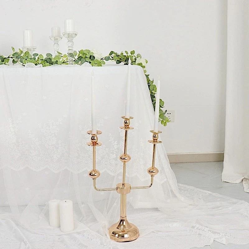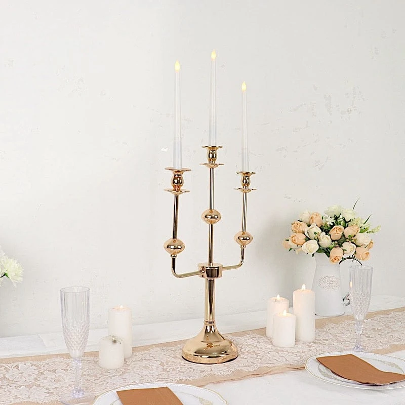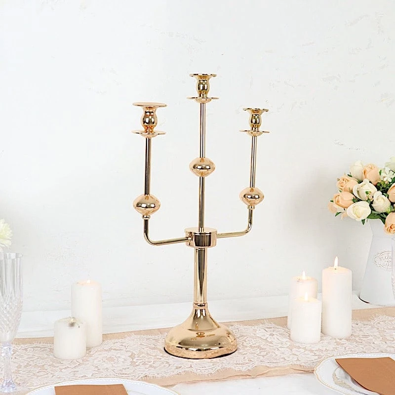 Add a touch of timeless elegance to your tabletop with candelabra candle holders from Leilani Wholesale. Crafted from high quality metal with a round base, this 3-arm candelabra is perfect for displaying your elegant taper candles. Grace your reception tables with this stylish centerpiece or pair it with other decorations for your weddings, parties, events or any special occasions.