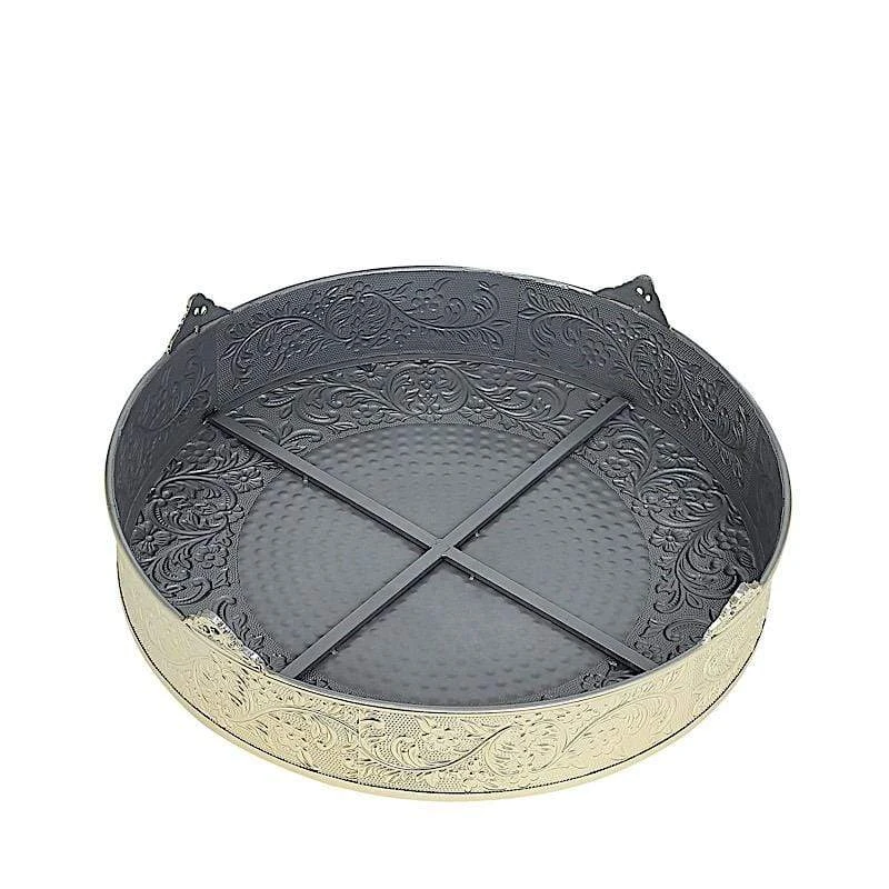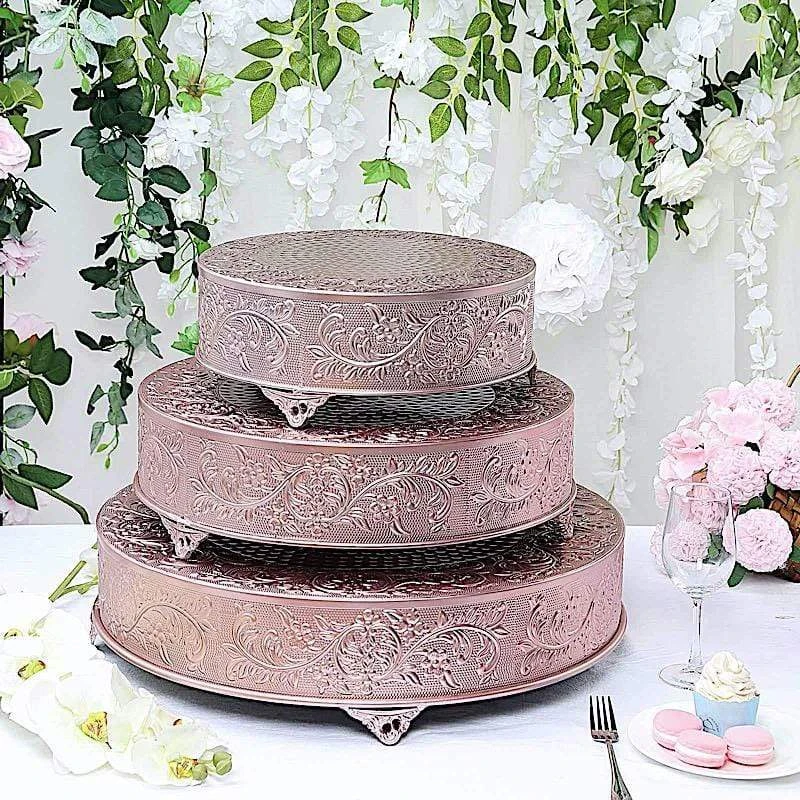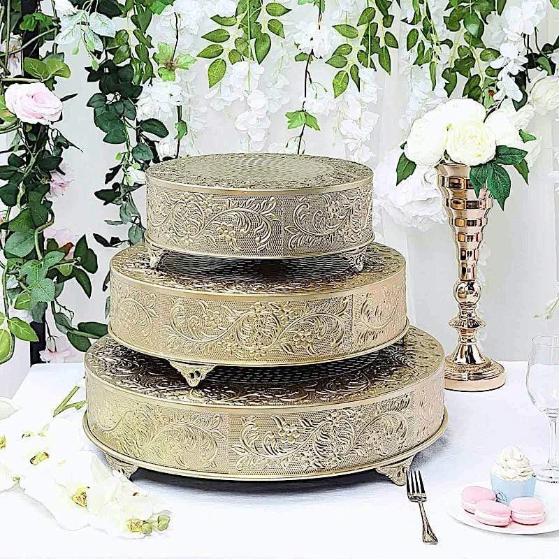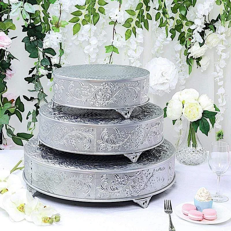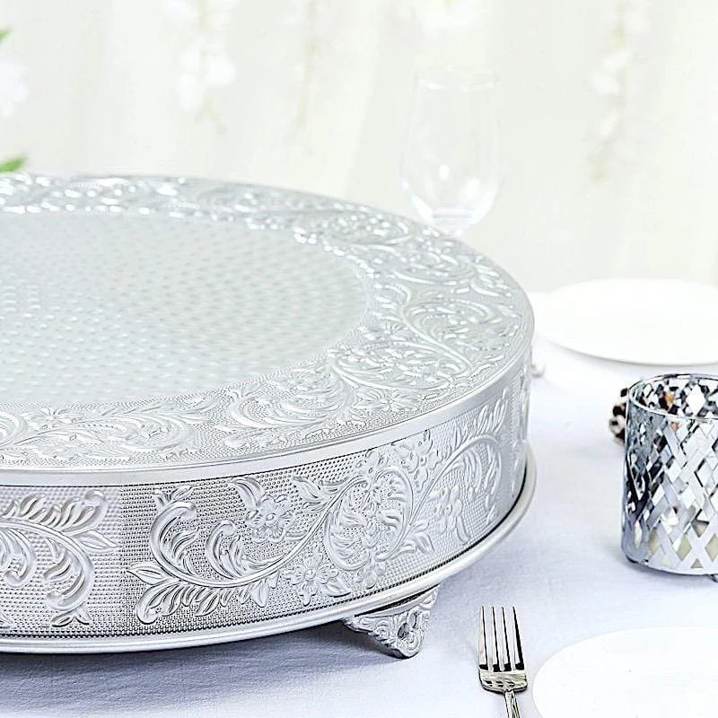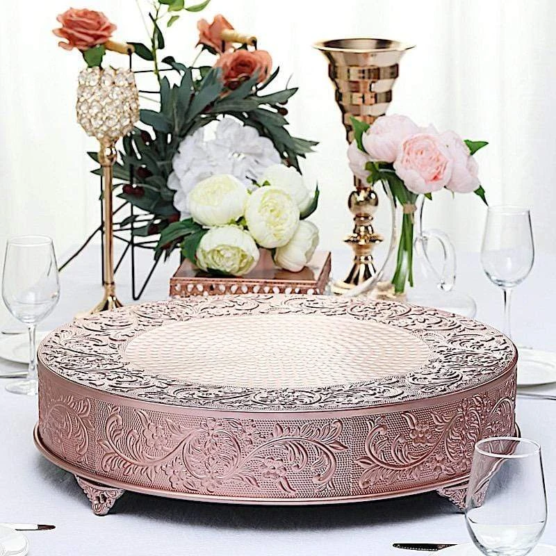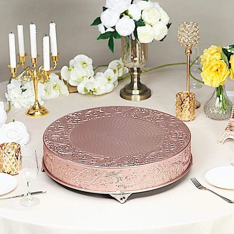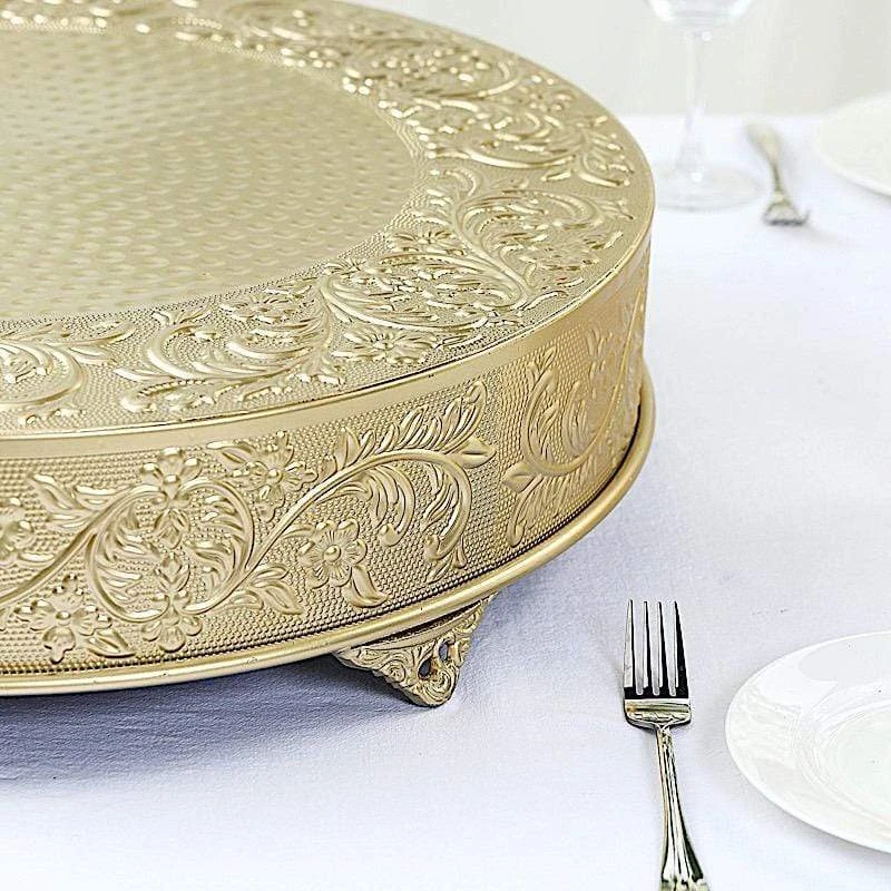 Present your cake and desserts on elegant cake stands from Leilani Wholesale! Featuring a high-quality metal with embossed flower design, this charming round cake stand is going to add a bit of sparkle and glam to your wedding, party or home kitchen tablescape. Use it to show your style or to add height and a more sophisticated look to your tables. Create your dream decorations and see where your imagination takes you!