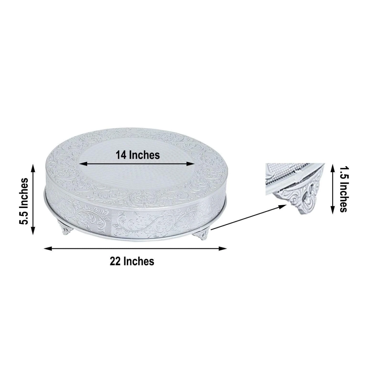 * Each cake stand measures approx. 22″ wide x 5.5″ tall.