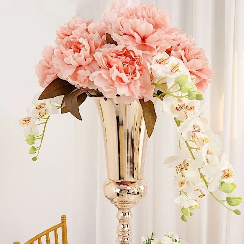 Let your creativity shine with this charming trumpet-shaped vase from Leilani Wholesale! Crafted from high-quality metal with a stylish pole and square base, this versatile vase will add a glamorous touch to your tablescape. Impress your guests by using this vase as a centerpiece filled with your gorgeous floral arrangements. A perfect decorative display for your weddings, parties, events or in your home.