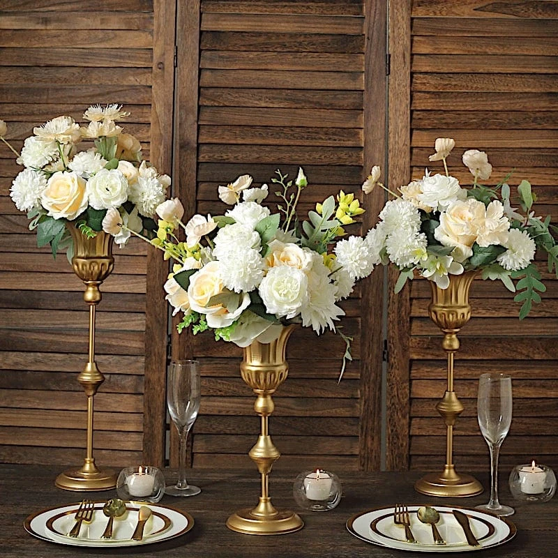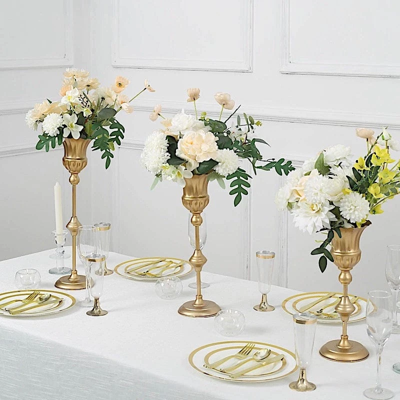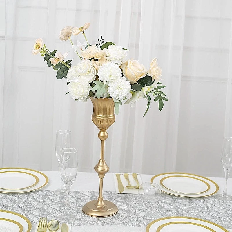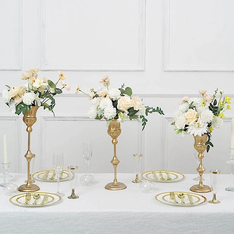 Let your creativity shine with elegant flower vases from Leilani Wholesale! Crafted from high-quality metal with a flute-like design, these versatile trumpet vases will add a sophisticated touch to your tablescape. Impress your guests by using these vases as centerpieces filled with your gorgeous floral arrangements. Perfect decorative displays for your wedding, parties, events or in your own home.