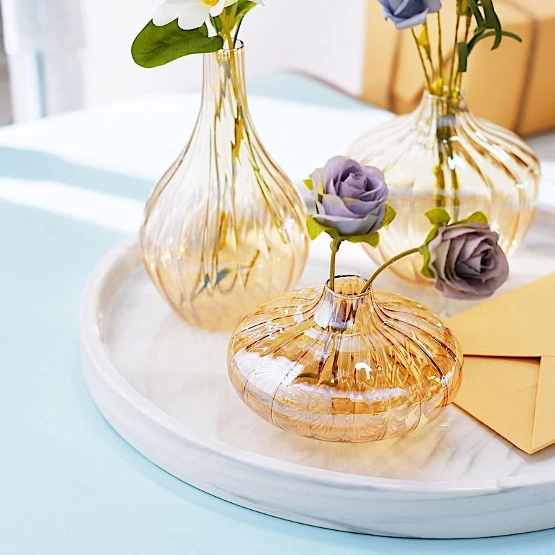 Decorate your special day with elegant glass vases from Leilani Wholesale! Our centerpieces are great for weddings, parties, events or home decor. This decorative set of vases can be filled with fresh or artificial flowers, plants, glitters, colored sands, fillers and more. Arriving in a set of three, these ribbed glass vases can be used as centerpieces, mantelpiece accents or placed on your end table, night stand, or desk, to tie any room together.
