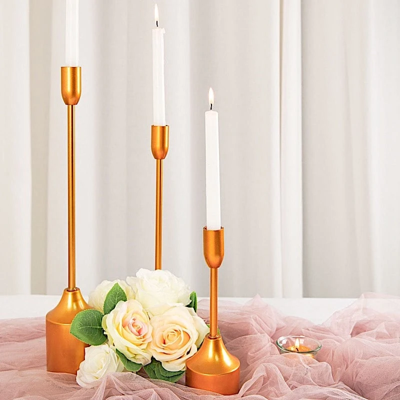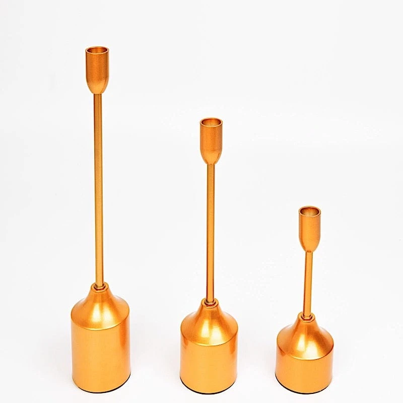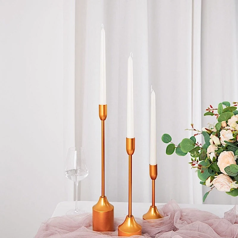 Add a touch of timeless elegance to your tabletop with taper candle holders from Leilani Wholesale. These candlesticks are constructed from high-quality metal with a gold finish that will complement traditional or contemporary party decorations. Pair this set with your taper candles to grace your reception tables with a stylish centerpiece or pair it with other decorations for your weddings, parties, events or any special occasions. These taper candle holders are also perfect for your modern home and great as gifts for family and friends.