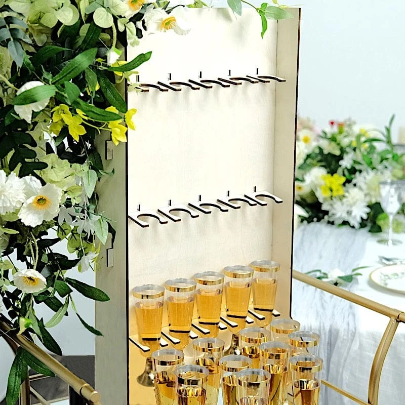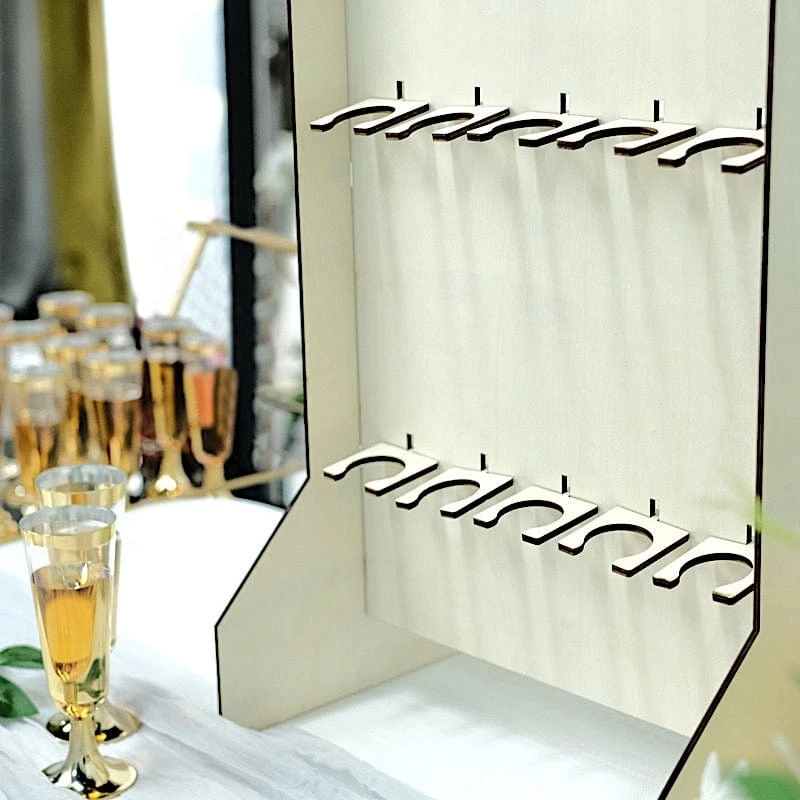 Have a convenient and elegant way to serve your drinks with champagne glass holders from Leilani Wholesale! Crafted from high quality wood with 15 glass shelves to hold your wine glasses and a broad base that provides stability. This 3-tier rectangular wine glass rack is a perfect way to display beverages for your special occasions. This self-standing champagne flute holder can also create an organized look for your home living room or kitchen. Great decorative stand or server for your wedding, parties and events.