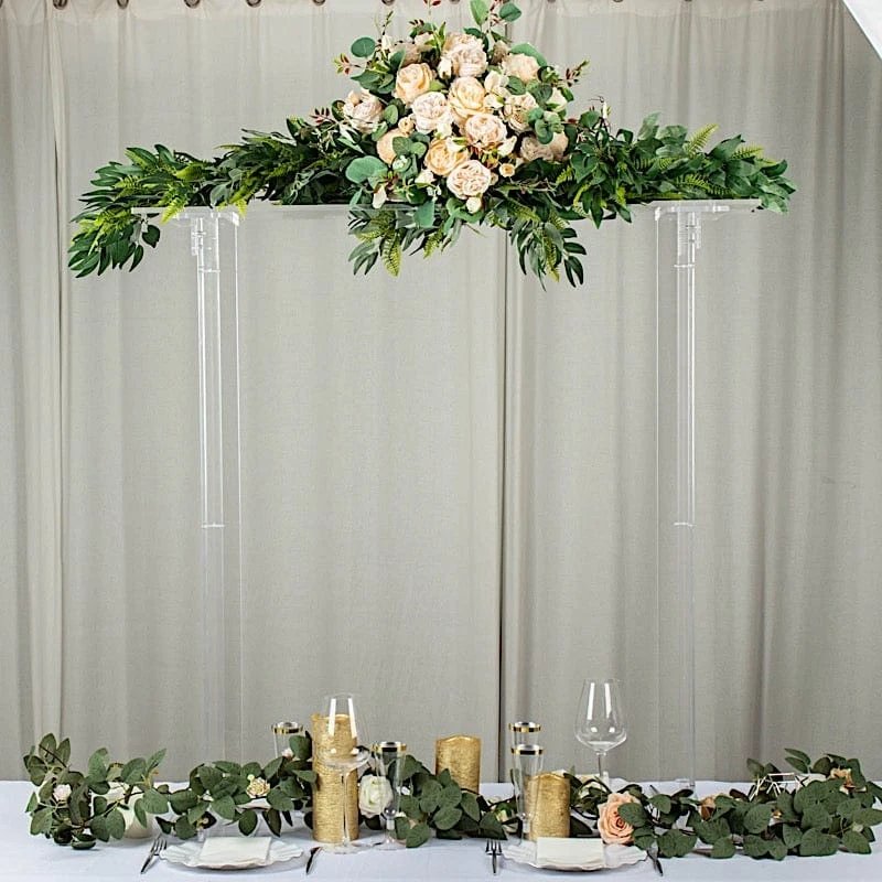 Create an over-the-top look for your dining space with over-the-table display stands from Leilani Wholesale! This rectangular acrylic stand will make a perfect centerpiece for your long tables. Let your creativity shine by wrapping the stand with LED string lights, flower garlands, greenery or any decorative accents that you can think of. Perfect for adding a magical scene for holiday table decor, weddings, indoor or outdoor parties, or any special occasion, this display stand will allow you to easily make eye-catching backgrounds for your photos. Set up anywhere instantly and see where your imagination takes you!