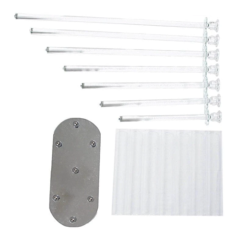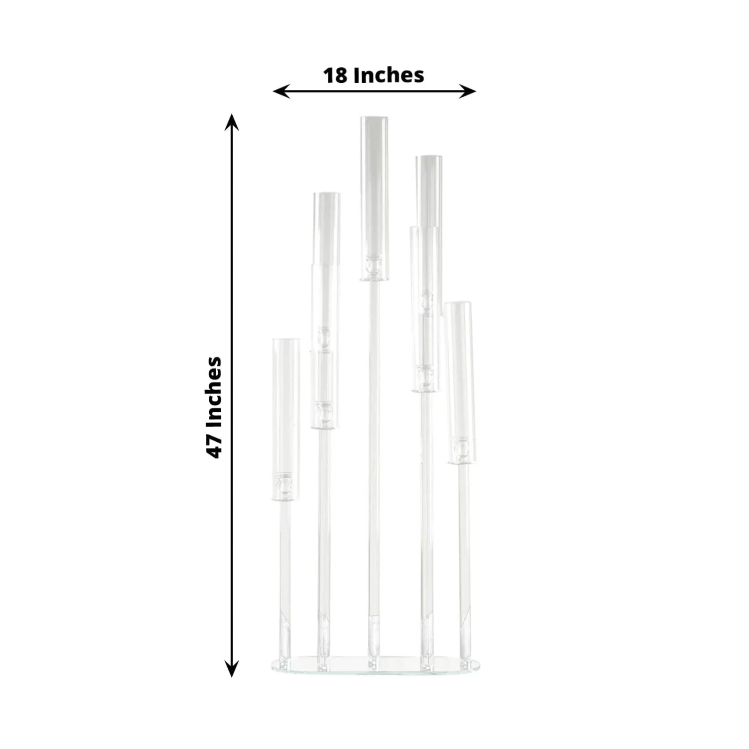 Add a touch of timeless elegance to your tabletop with candelabra candle holders from Leilani Wholesale. This 47″ tall crystal-like glass candle holder is designed with an oblong mirror base, stems with varying heights and 7 round glass shades to secure your taper candles. A perfect centerpiece to grace your reception tables! Use it as a decoration for your weddings, parties, events, special occasions and for your home. Get your dream decorations and see where your imagination takes you!