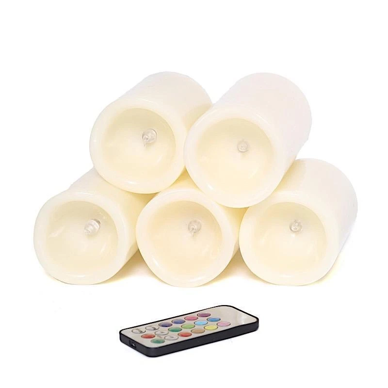 Set the mood for all special and romantic occasions with flameless LED pillar candle lights from Leilani Wholesale. These battery operated candle lights will not only bring elegance to any room but will also add a positive calm vibe to your home. With handy remote control and 12 LED color options, you can easily set the flames to match with your party theme or mood. Add these LED candles to your wedding, party, or home to get that cozy atmosphere and beautifully lit table centerpieces.