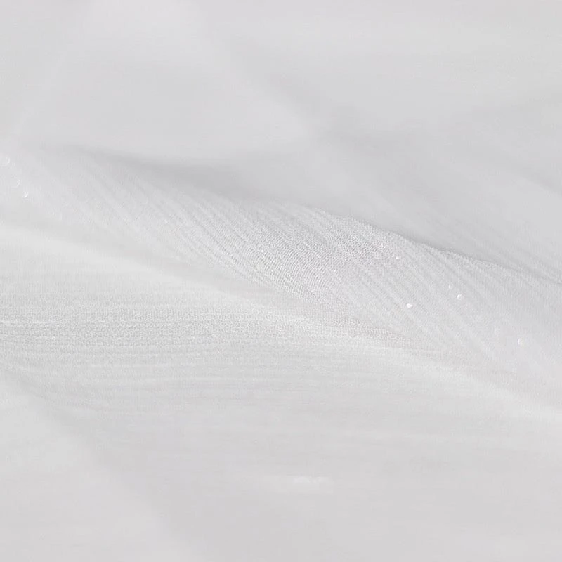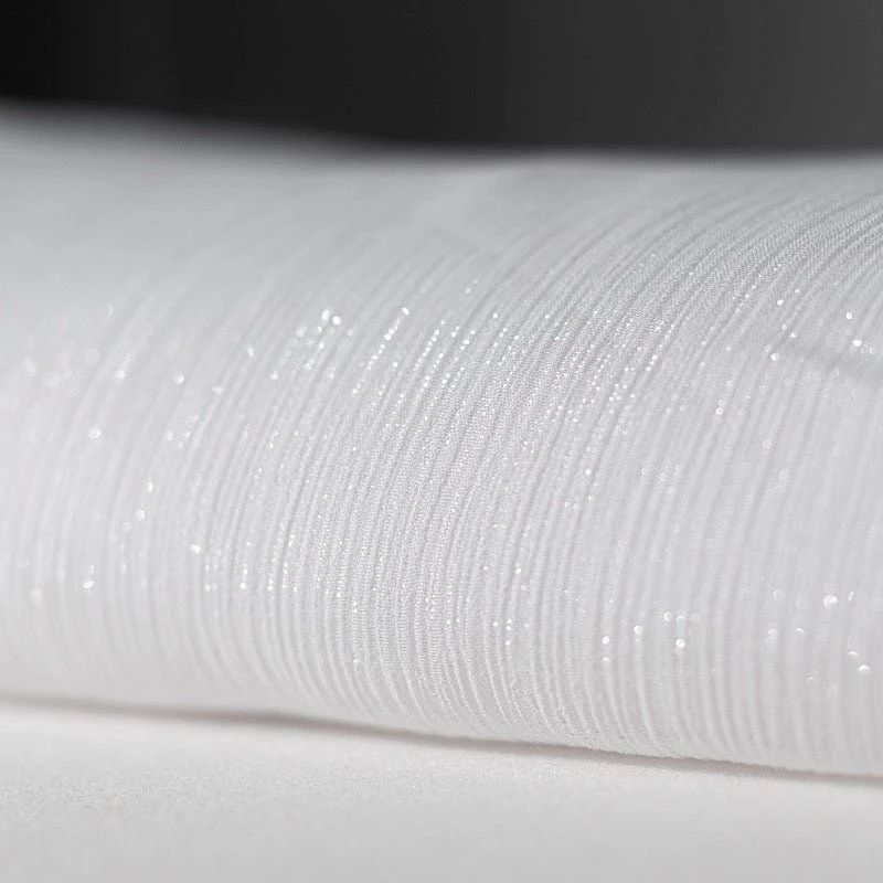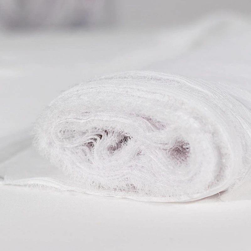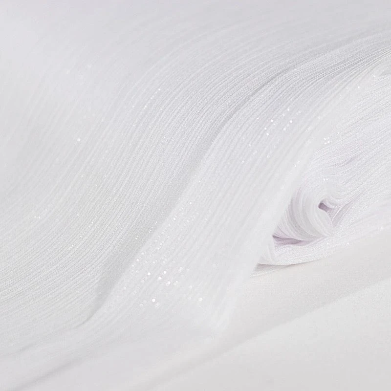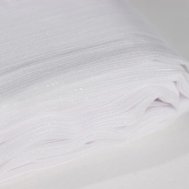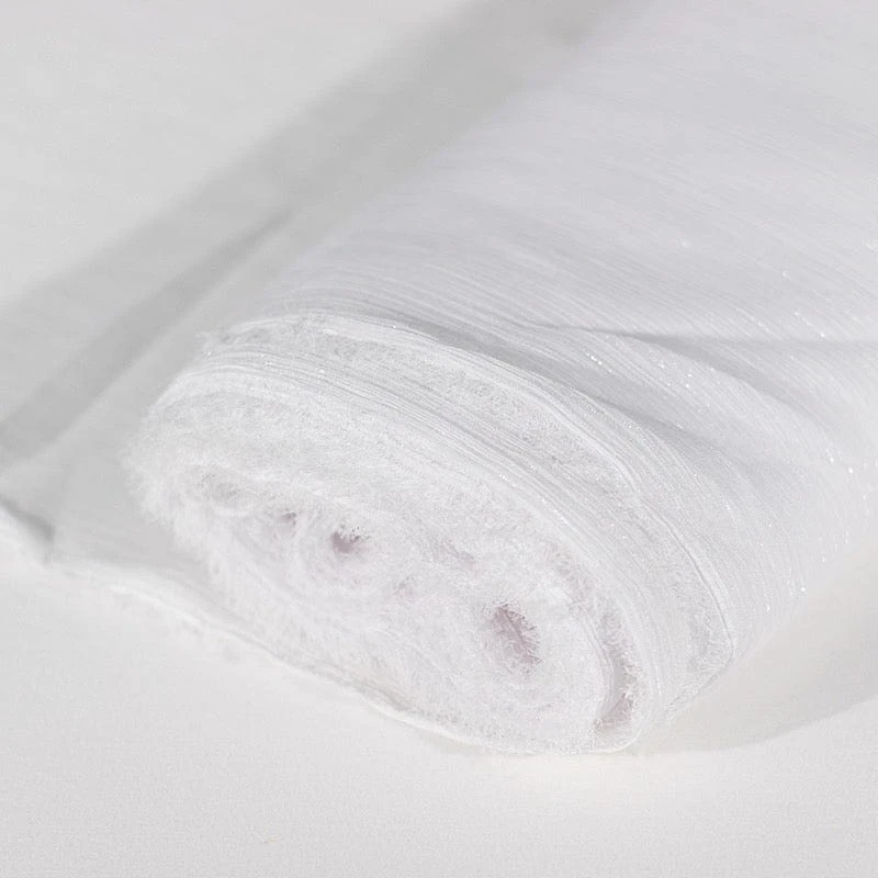 Add a personal touch to your wedding decorations with high quality white crinkle chiffon with silver threads from Leilani Wholesale!