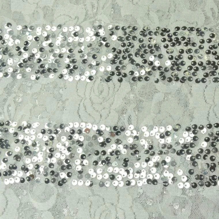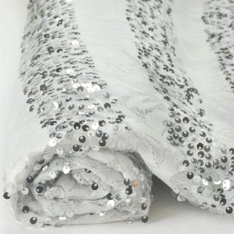 Add a personal touch to your wedding decorations with sequined stripes lace fabric from Leilani Wholesale!