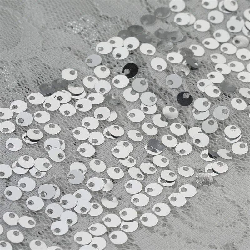 Dazzling 54″ wide and 4 yards long rolls are the perfect size for your projects like DIY chair sashes, custom size table runners, backdrops and other decorations. This particular size is also great for swagging and draping. The shining sequins and lace will set this fabric apart from the rest!