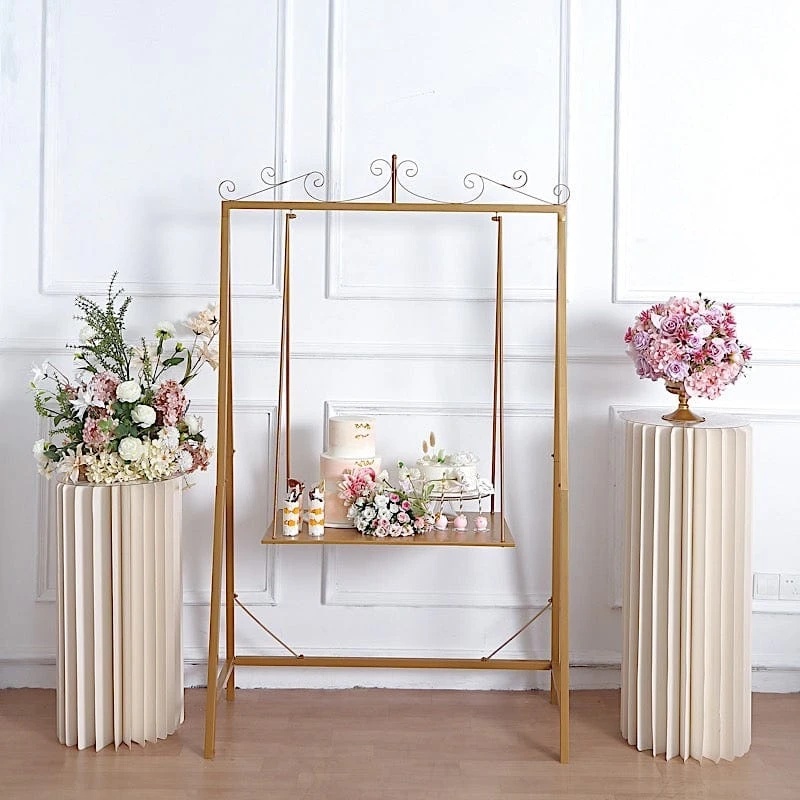Create a wow factor for your celebration with dessert display stands from Leilani Wholesale! Featuring a sturdy metal construction, this swing-like cake stand will make a spectacular display for your desserts, sweet treats and favors. Great for making hanging dessert centerpiece displays for weddings, parties, events or any special occasions. Create your dream decorations and see where your imagination takes you!