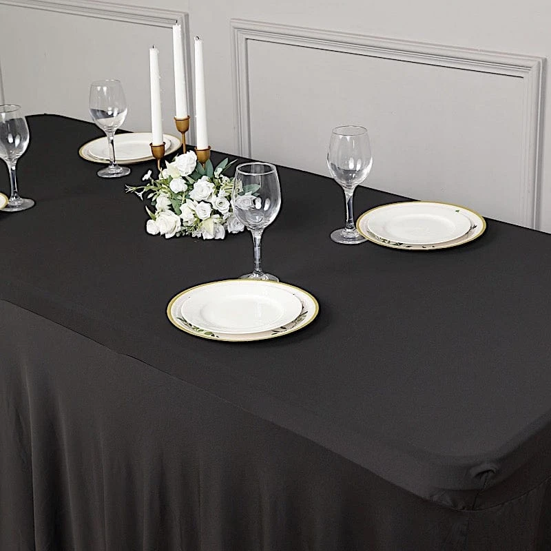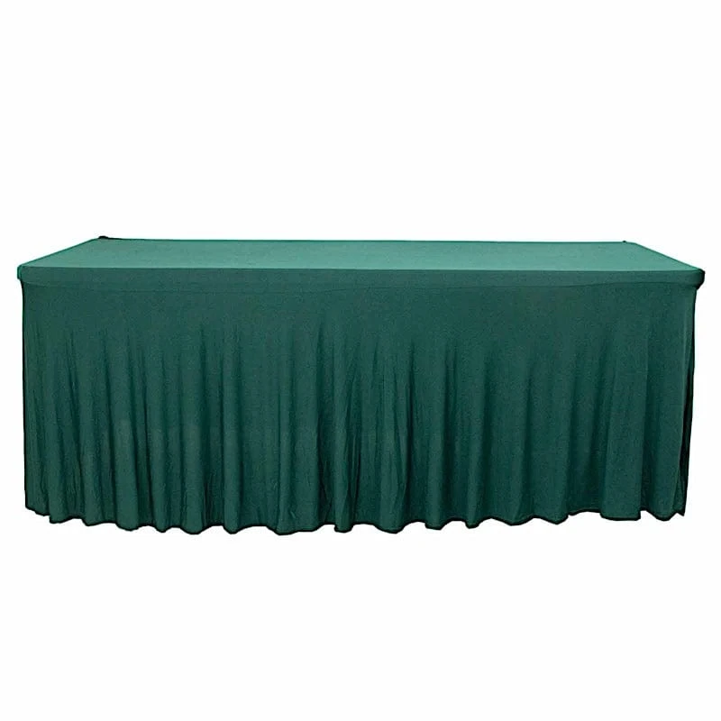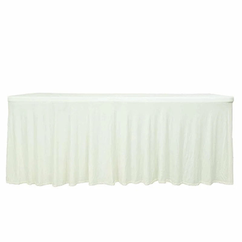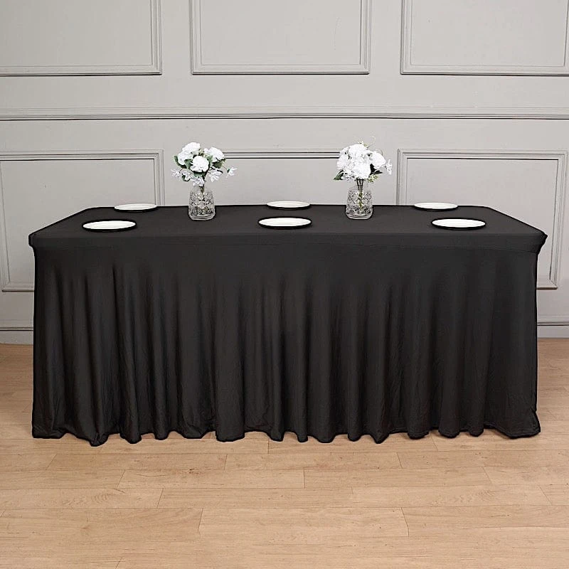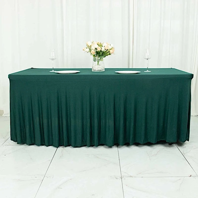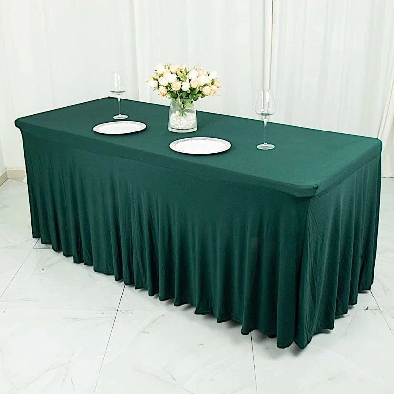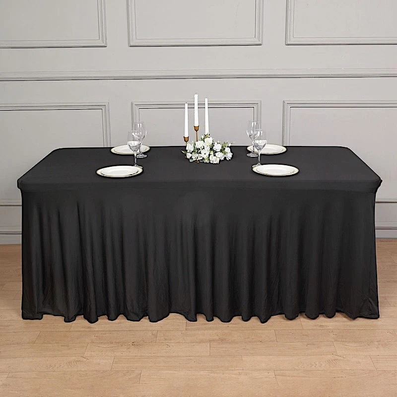 Set a welcoming tabletop for your special occasions with rectangular spandex tablecloths from Leilani Wholesale! Created from high-quality spandex with a wavy skirt-like look, these stretchable table linens will transform your tables into a smooth wrinkle-free look. Pair them with elegant chair covers, sashes or any matching dining decorations to add an exquisite and extra decorative touch to your party table setting. Perfect for weddings, parties, events, trade show booths or any special occasions.