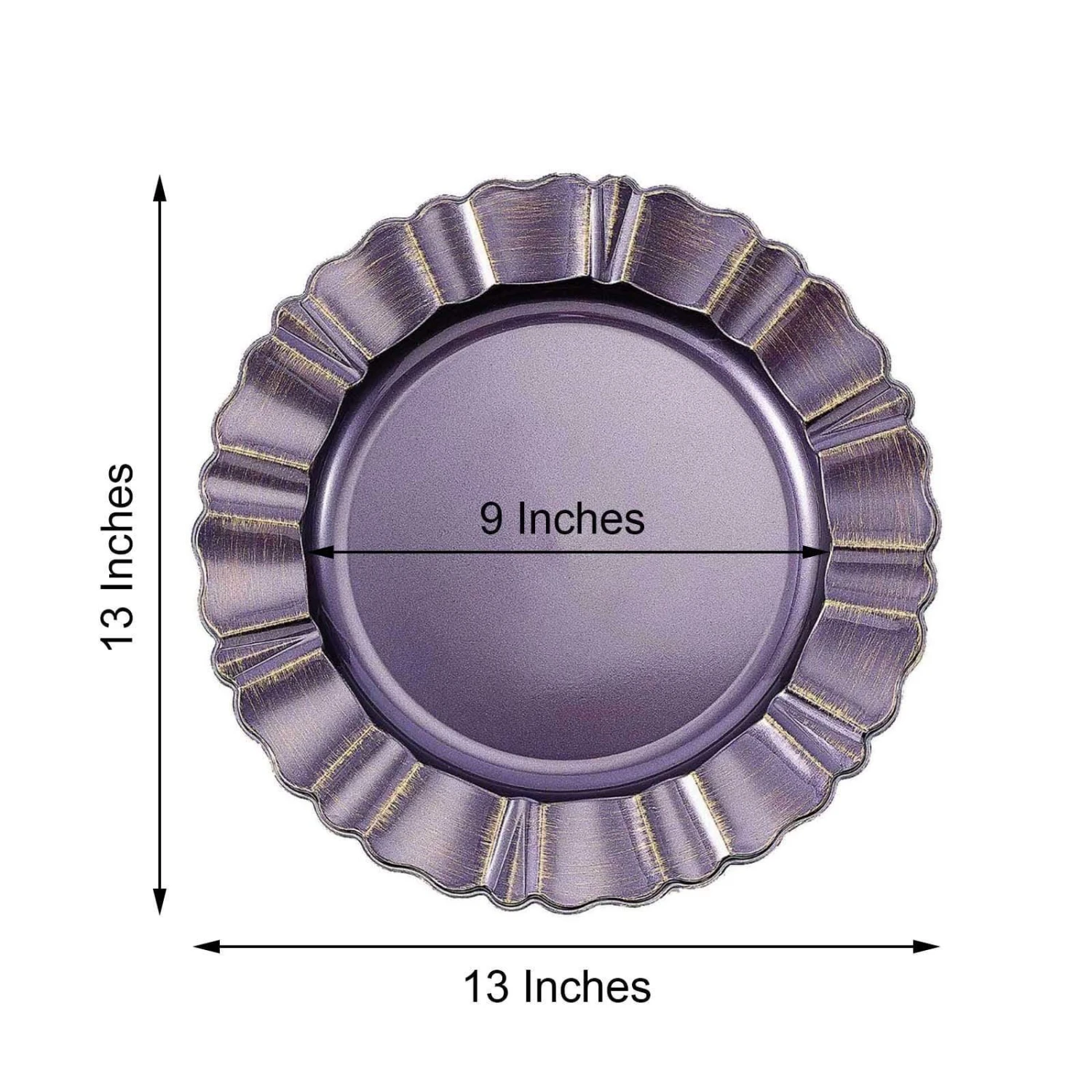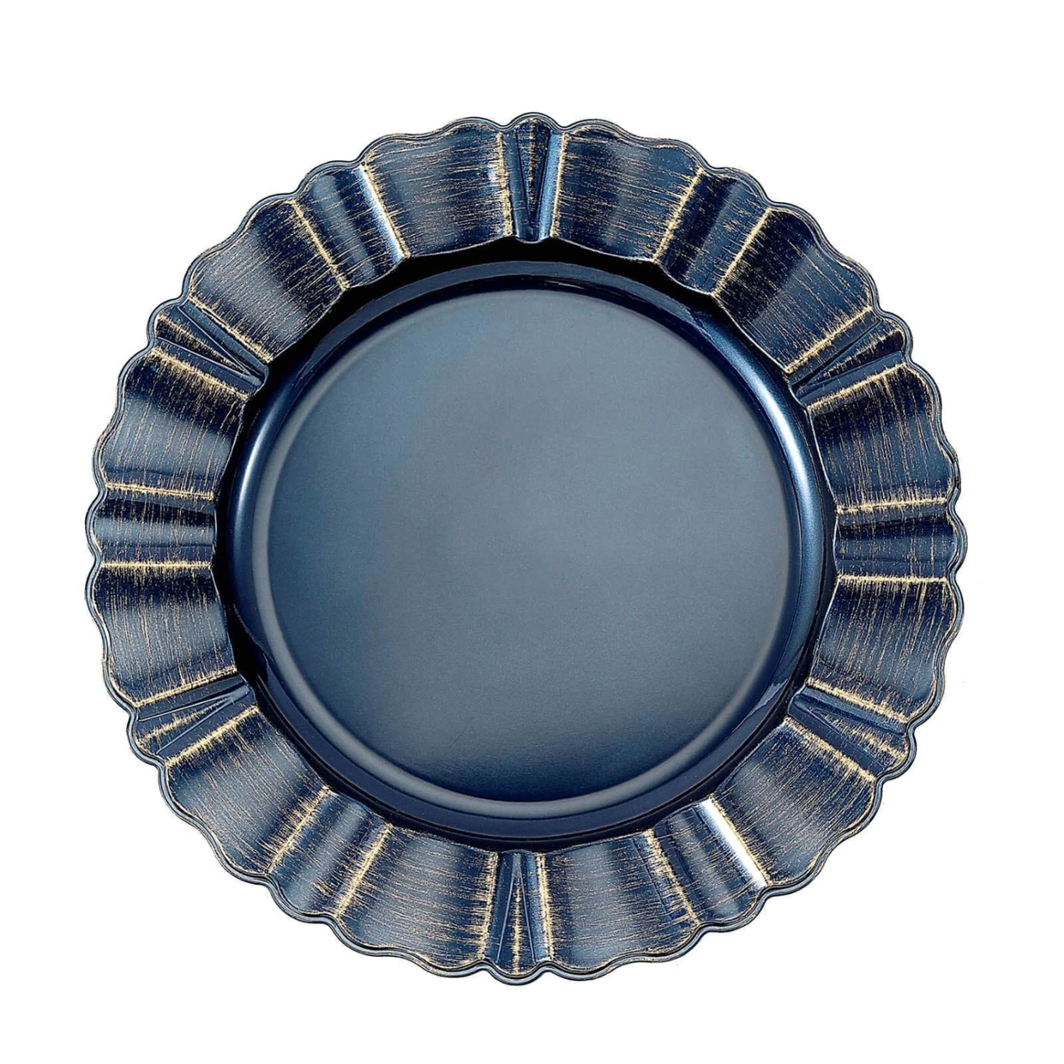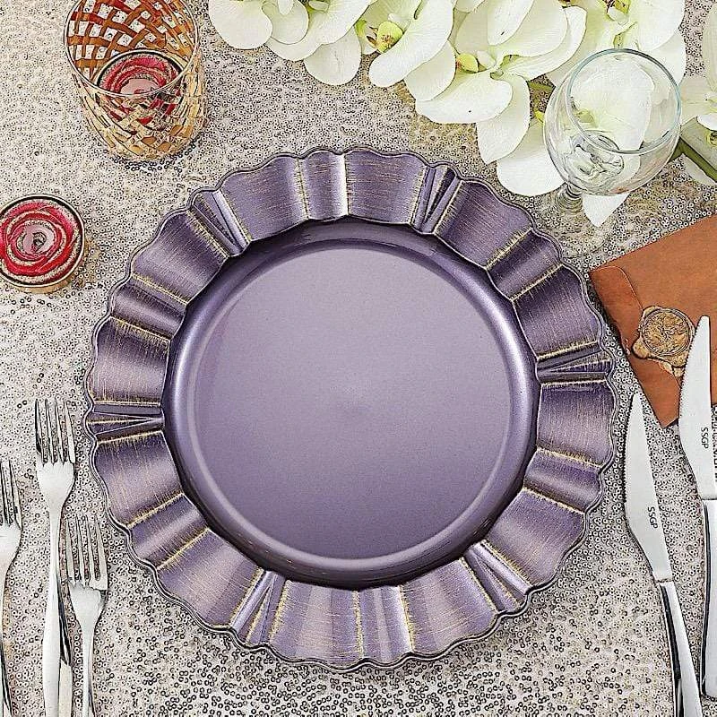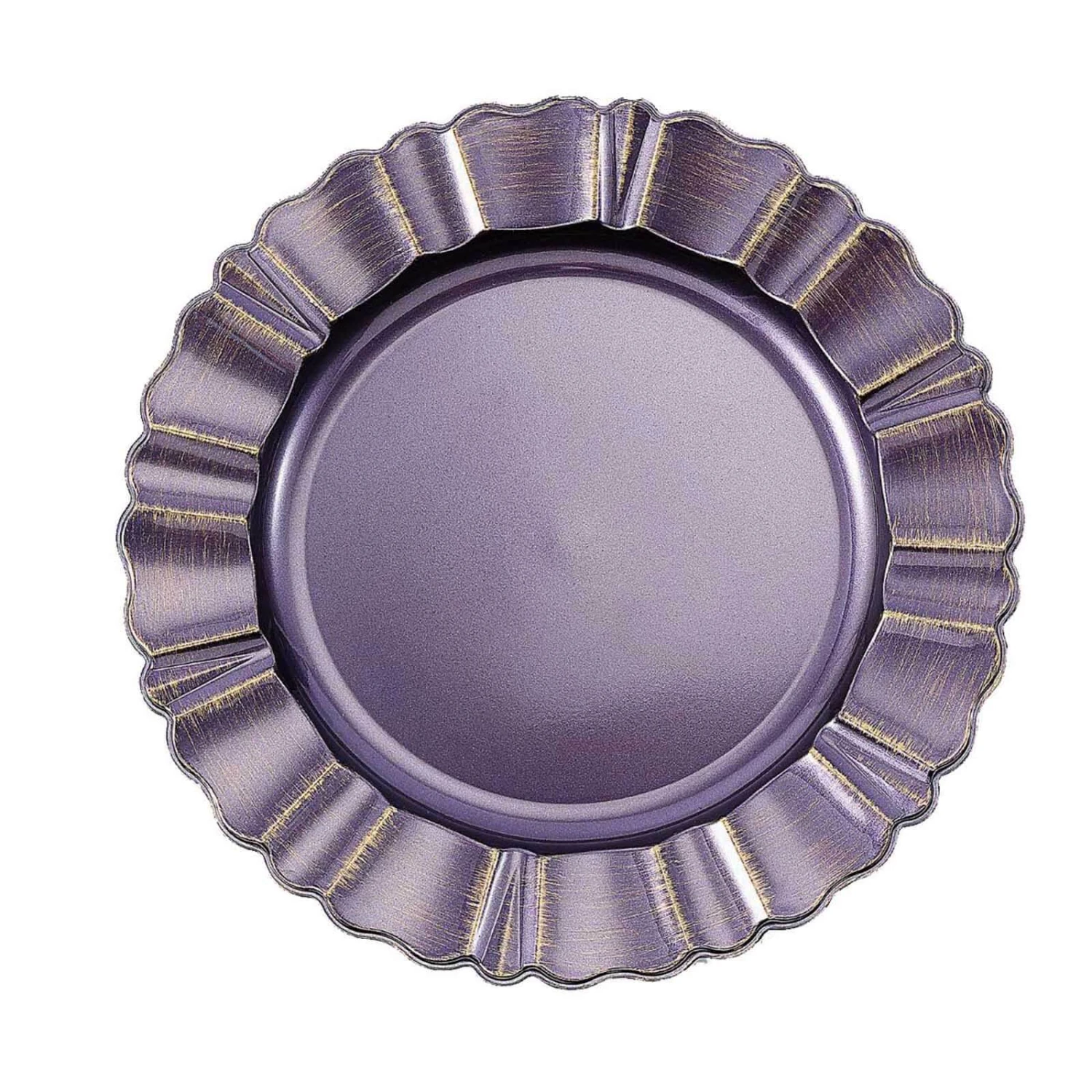 Accent your party tables with classic round charger plates from Leilani Wholesale! Featuring a stylish scalloped rim design, these lightweight charger plates will enhance the appearance of your reception tables. They are easy to clean, just wash with hot water. Great to use with fine china and to protect the linens from the plates and bowls.