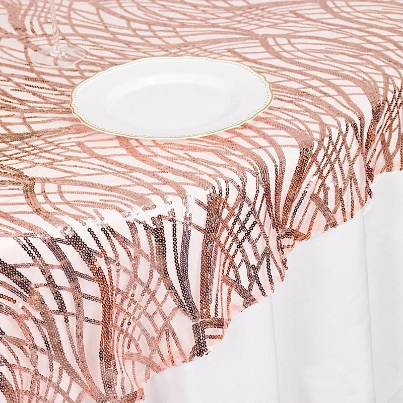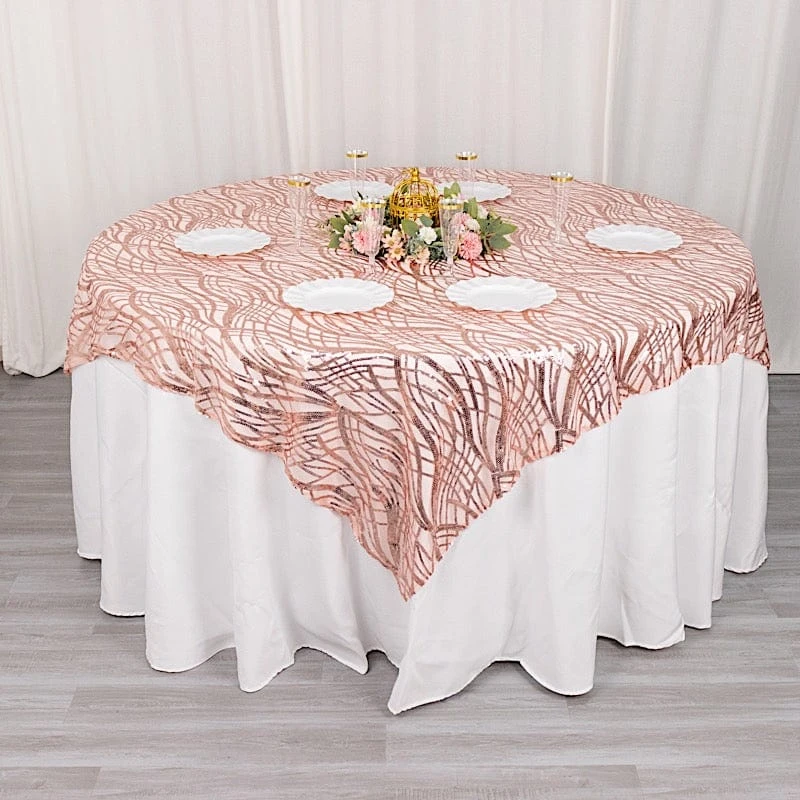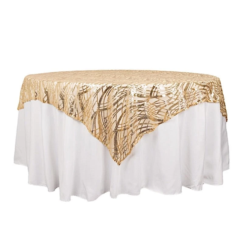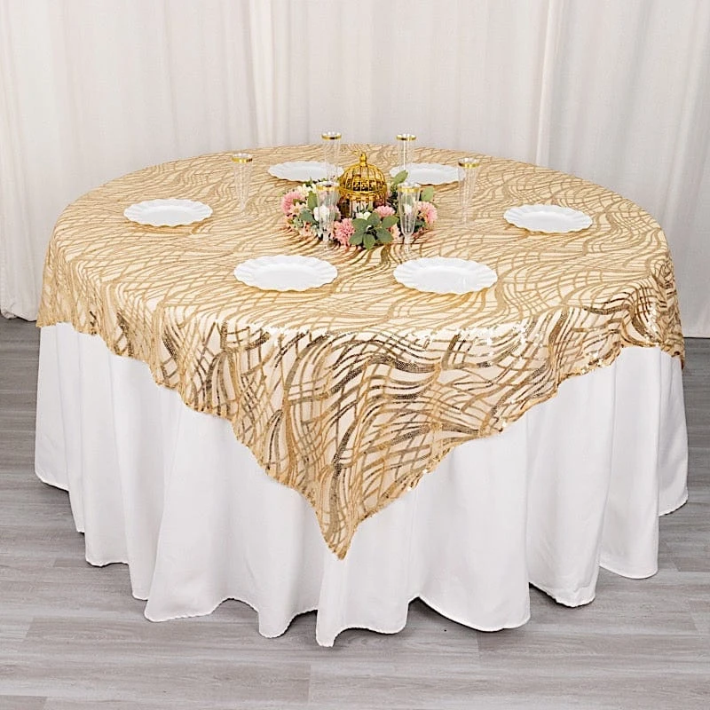 Dress your party tables in style and bring a bit of glitz and glamour to your decor with table overlays from Leilani Wholesale! Crafted from high-quality tulle net fabric with wavy embroidered shiny sequins, this square table overlay will create a sparkling look for your weddings, parties, events or any special occasion. Pair these stylish linens with matching napkins and dinnerware to add an exquisite and extra decorative touch to your table setting. Get your dream decorations and see where your imagination takes you!