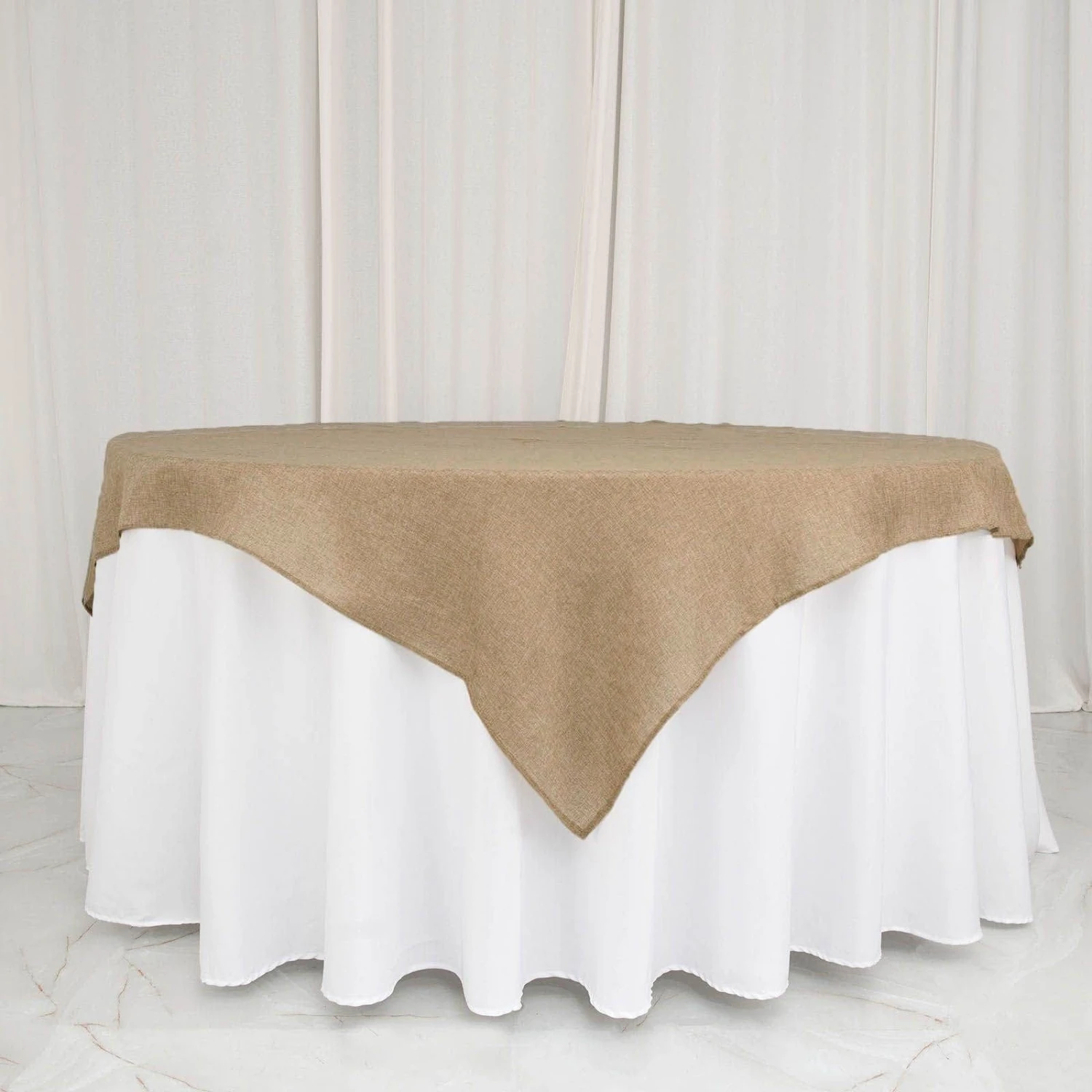 Spotlight your reception tables with the rustic charm of faux burlap square table overlays from Leilani Wholesale! Crafted from high-quality polyester fabric with a textured woven design, this jute-like table overlay will create a truly elegant table decoration. Pair these stylish linens with your tablecloths and napkins to add an exquisite and extra decorative touch to your party table setting. Perfect for weddings, parties, events or any special occasions. Choose from a variety of colors.