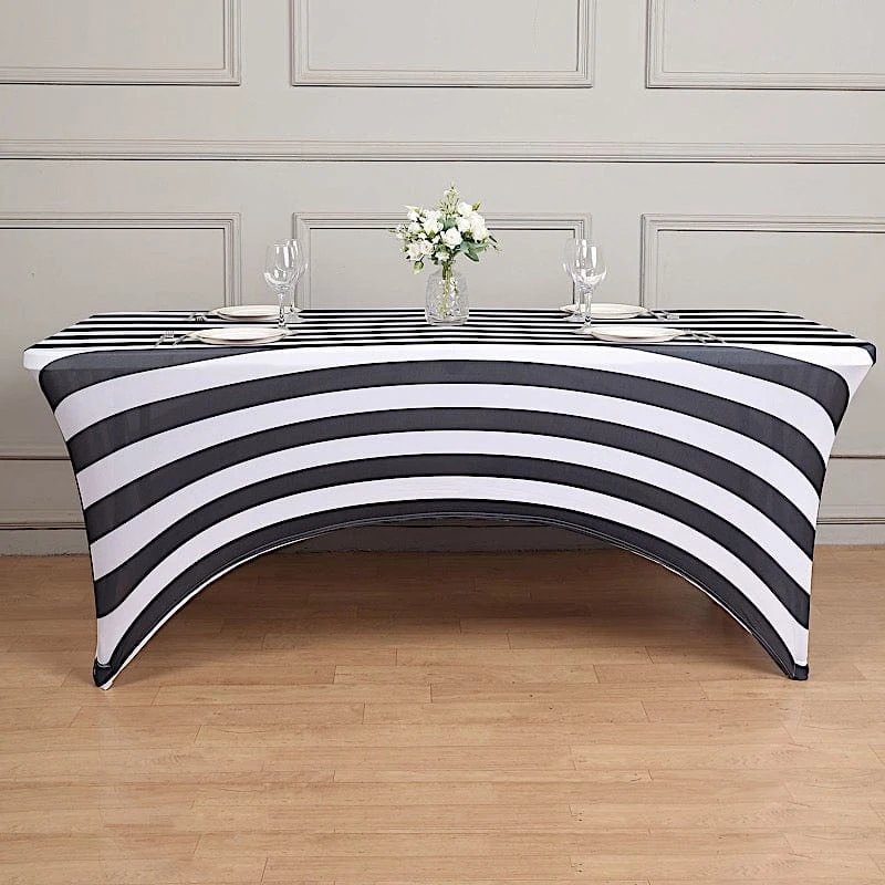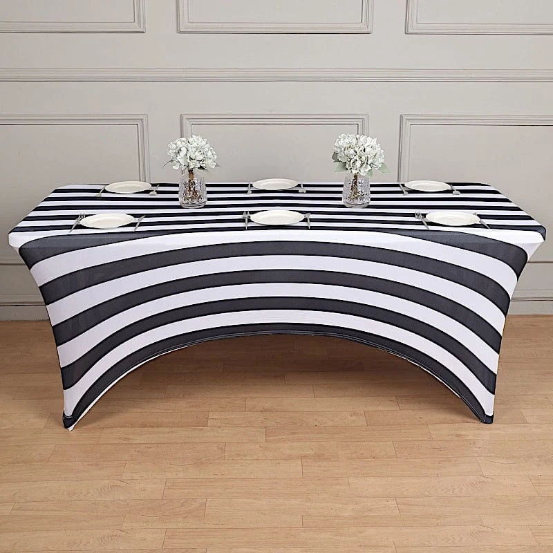 Set a welcoming tabletop for your special occasions with rectangular spandex tablecloths from Leilani Wholesale! Created from high-quality spandex with a striped design, these stretchable table linens will transform your tables into a smooth wrinkle-free look. Pair them with elegant chair covers, sashes or any matching dining decorations to add an exquisite and extra decorative touch to your party table setting. Perfect for weddings, parties, events, trade show booths or any special occasions.
