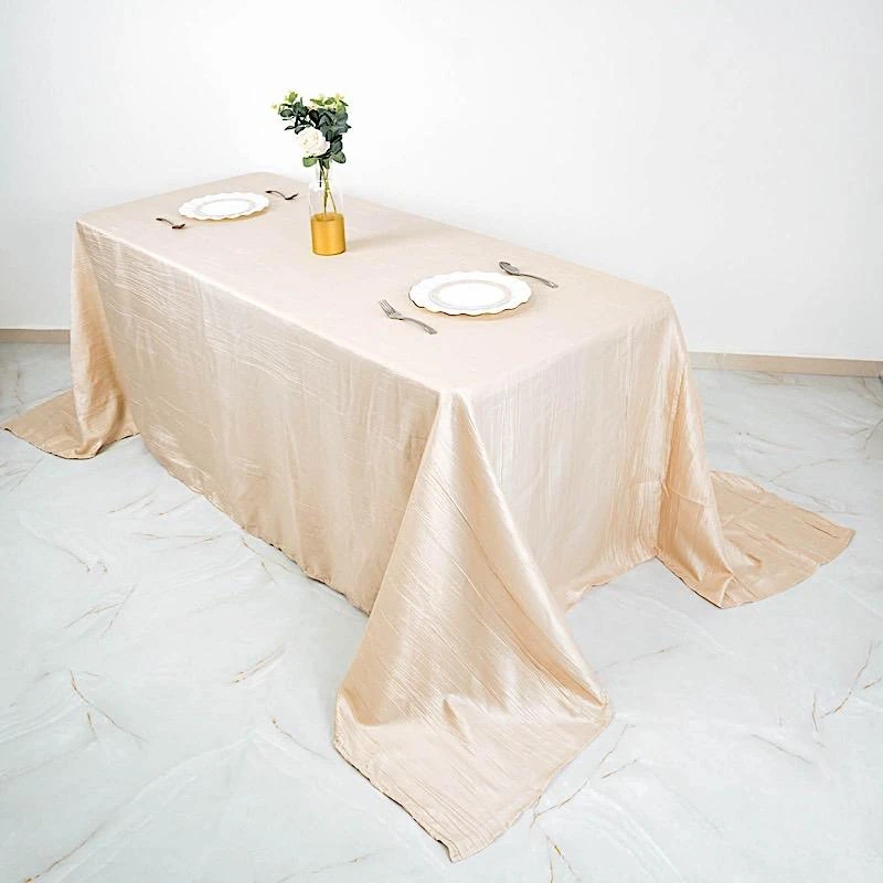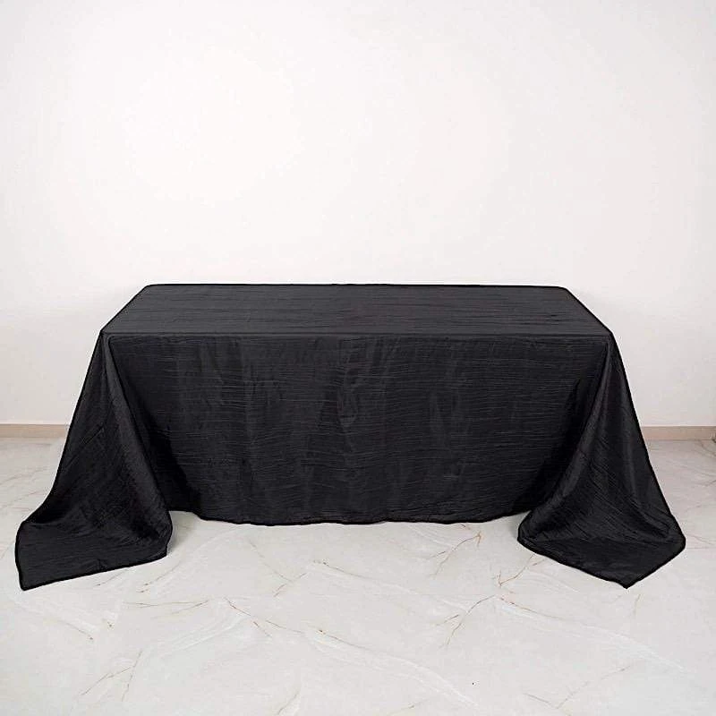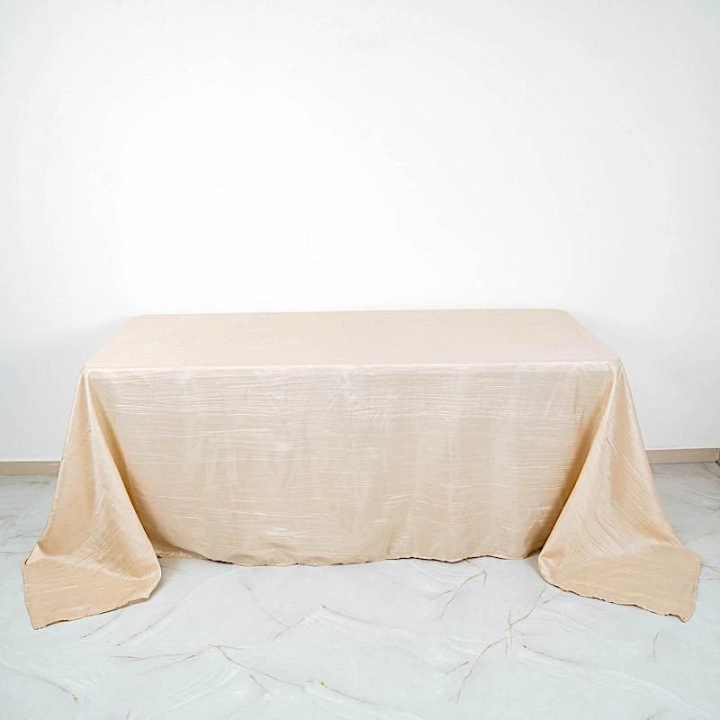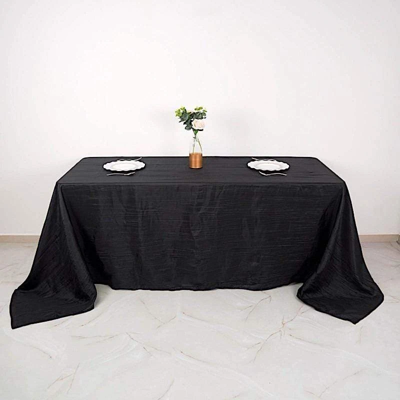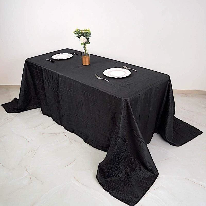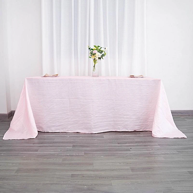 Elevate the look of your reception tables with elegant rectangular tablecloths from Leilani Wholesale! Crafted from high quality taffeta fabric with a crinkled design and metallic touch, this 90″ x 132″ textured tablecloth will create a stylish table decoration. Pair these stylish linens with matching napkins and dinnerware to add an extra decorative touch to your party table setting. Perfect for weddings, parties, events or any special occasions.