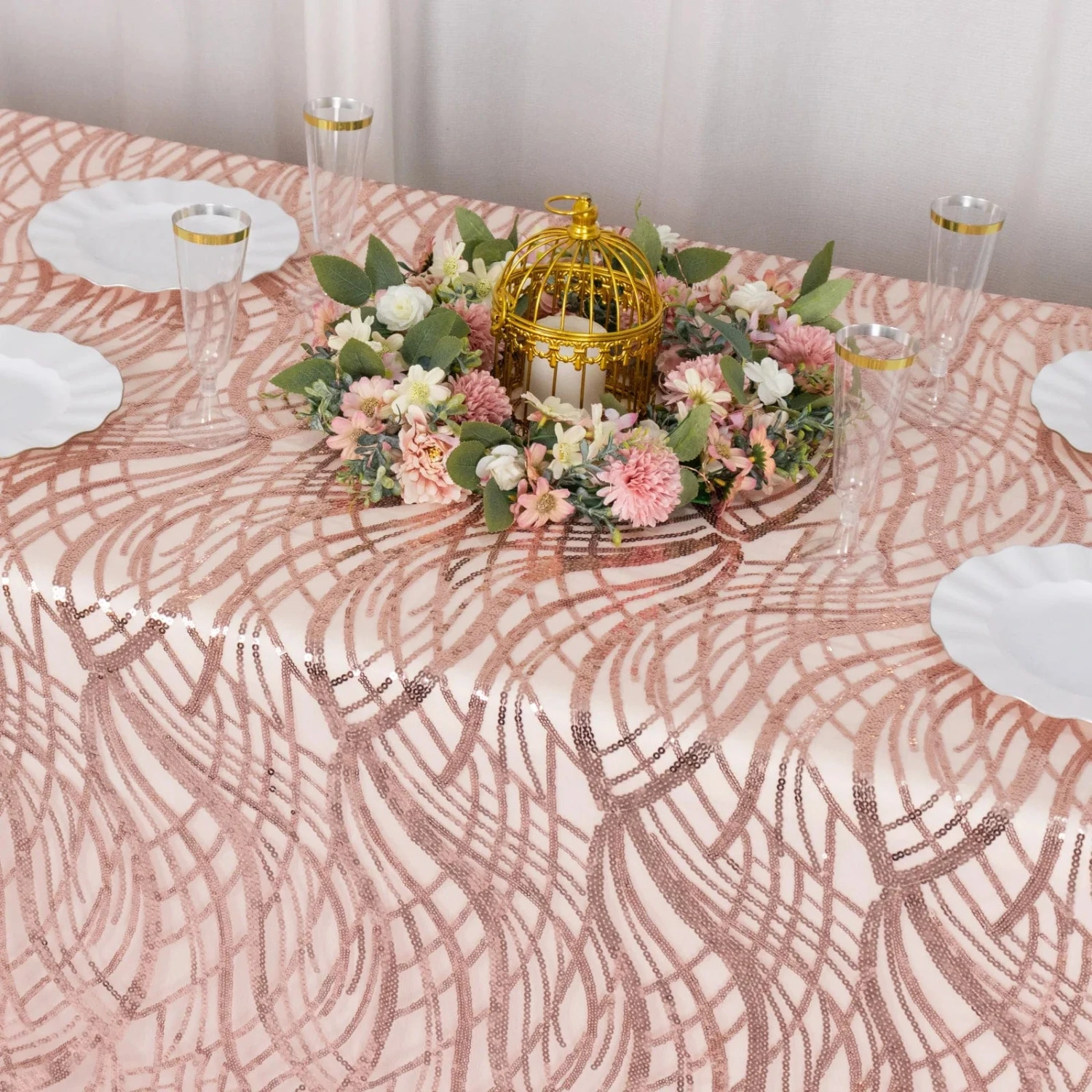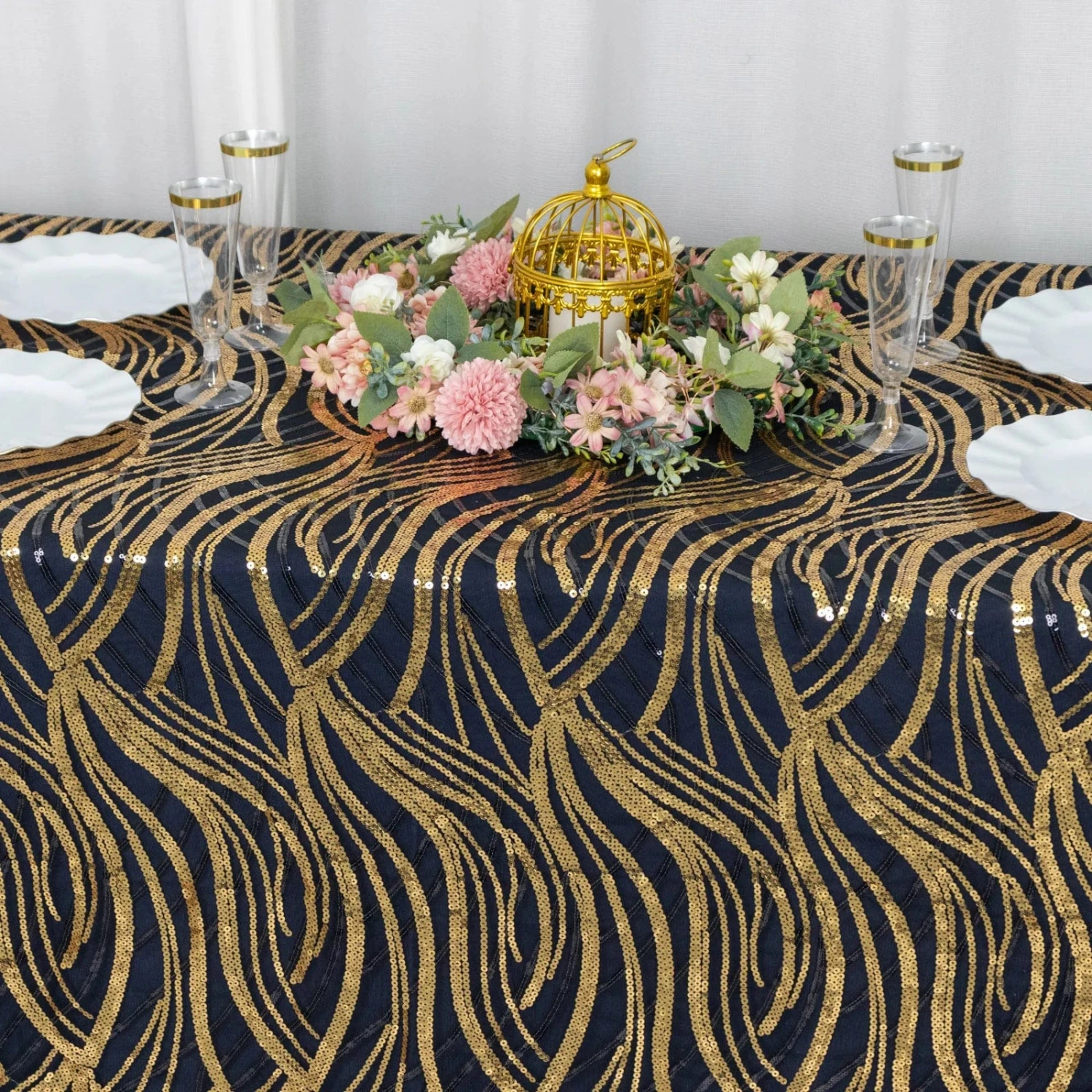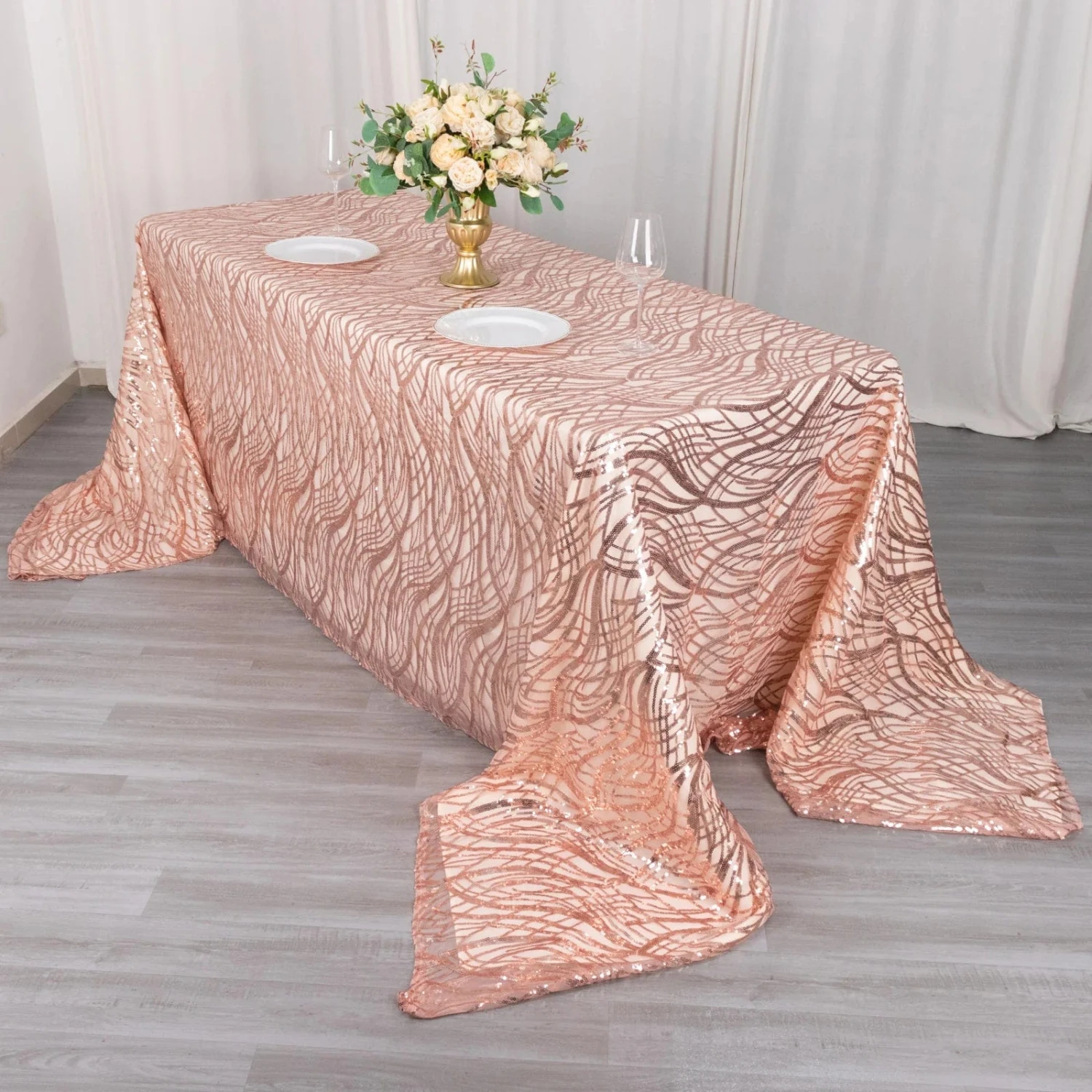 Spotlight your reception tables with rectangular tablecloths from Leilani Wholesale! Crafted from high-quality mesh fabric with wavy embroidered shiny sequins, this sparkling tablecloth will create a truly elegant table decoration. It would drop to the floor on 30″ x 96″ standard 30″ high banquet tables. Pair this stylish linen with matching napkins and dinnerware to add an exquisite and extra decorative touch to your party table setting. Perfect for weddings, parties, events or any special occasions.
