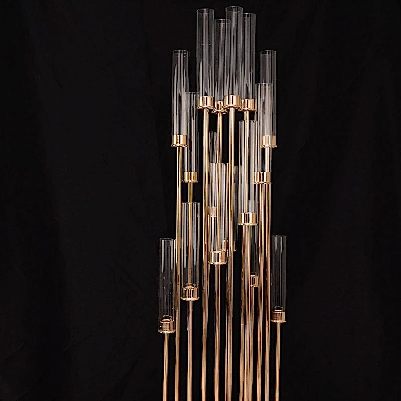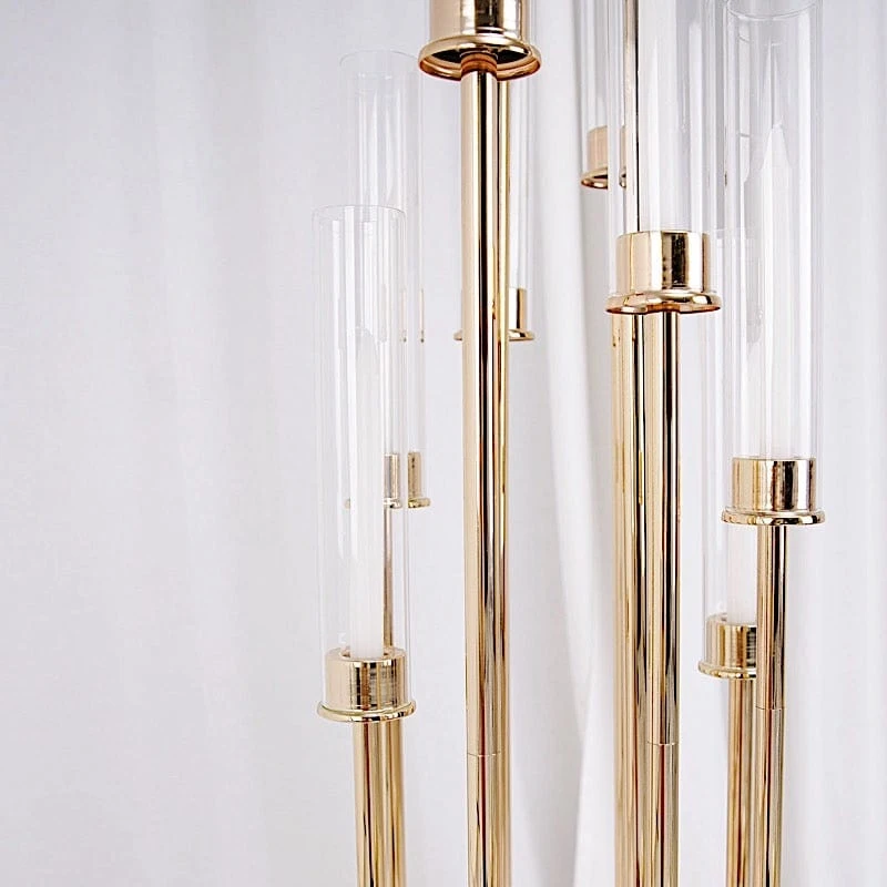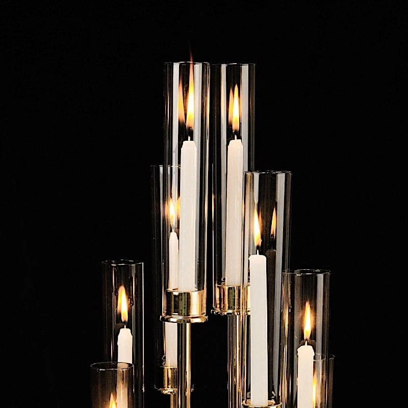 Add an extra warm glow to your party or home with this candle holder from Leilani Wholesale. A design that is both beautiful and functional. This candelabra will complement contemporary or traditional decor. Removable glass shades allow to use of either taper or LED candles. From weddings, events, and parties, to adding a special touch to your home, this candle holder will surely bring an elegant touch to your celebration.