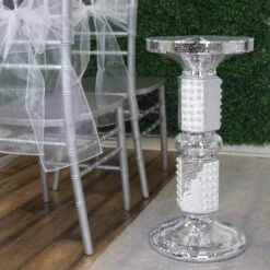 2 Pcs 8″ Tall Mercury Glass Geometric Pentagon Candle Holders Vases – Silver With Rose Gold