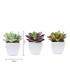 Set Of 3 5″ Tall Faux Cute Echeveria Succulent Plants With Off White Ceramic Pots – Assorted Colors