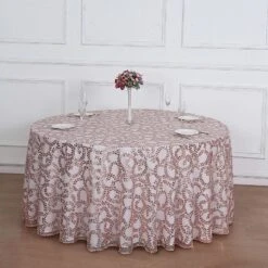 120″ Tulle Round Tablecloth With Sequins And Geometric Pattern