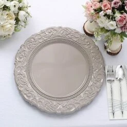 6 Plastic 13″ Sunray Round Charger Plates With Scalloped Rim